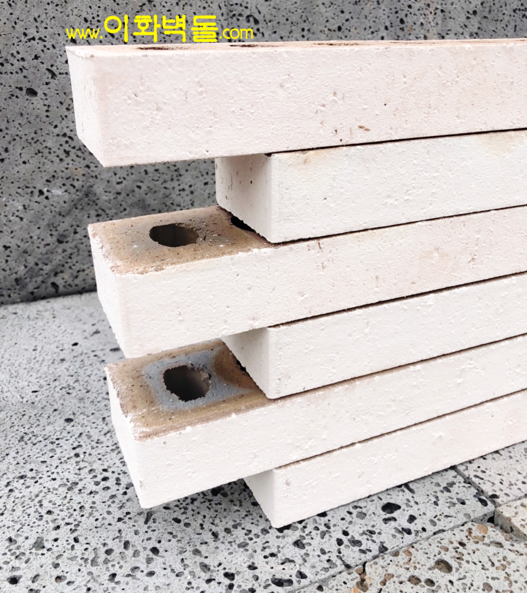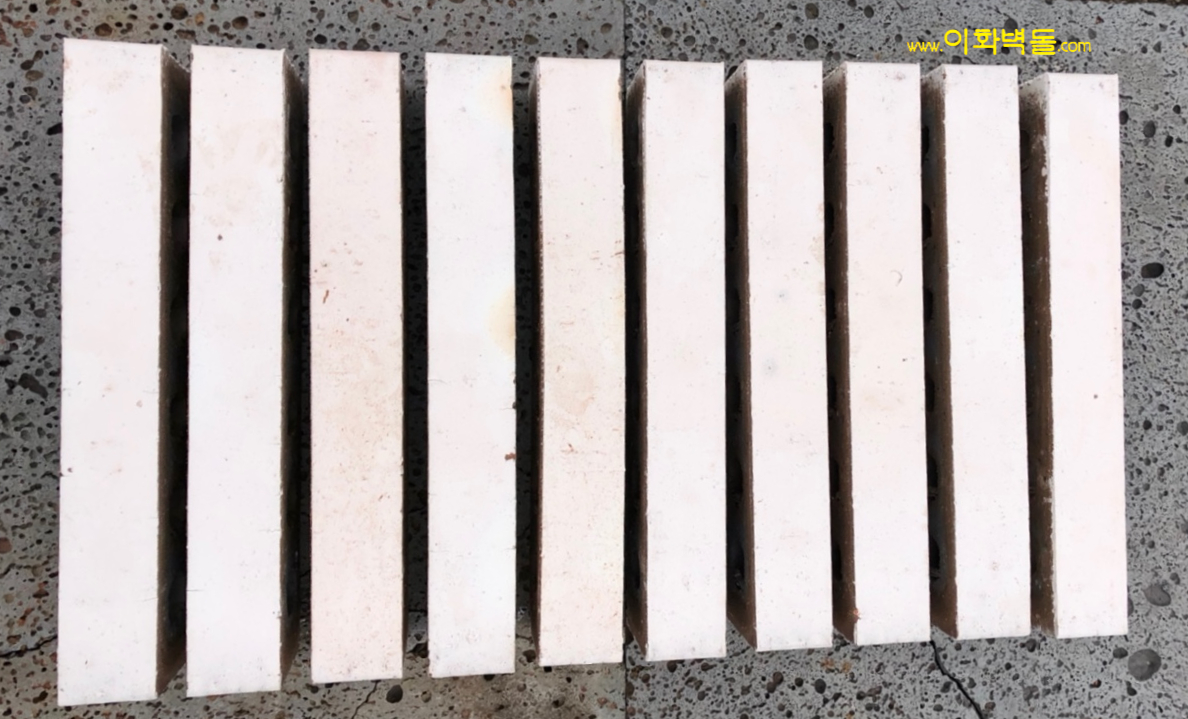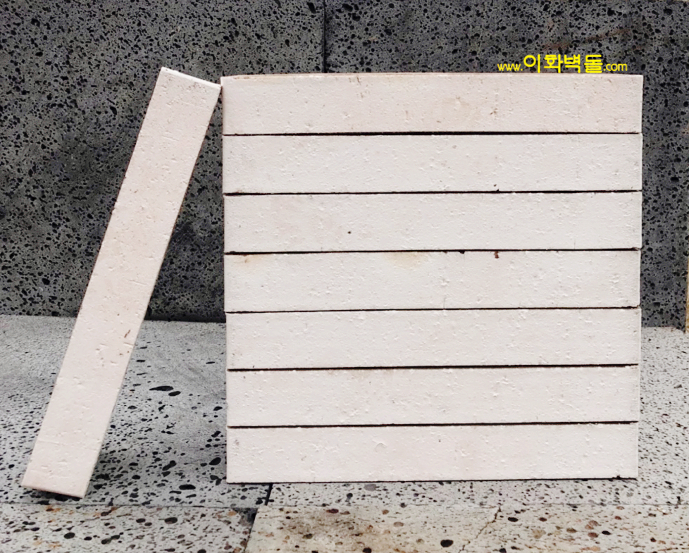 제품명 : 파노라마 화이트 규격 : 340x90x48 m²당 : 47장(줄눈15mm기준) 1p/780장 용도 : 신축건물치장 / 건물외벽재시공 / 실내외인테리어 특징 : 1200℃의 이상 온도로 구워서 만들어진 새로운 사이즈의 유약점토벽돌