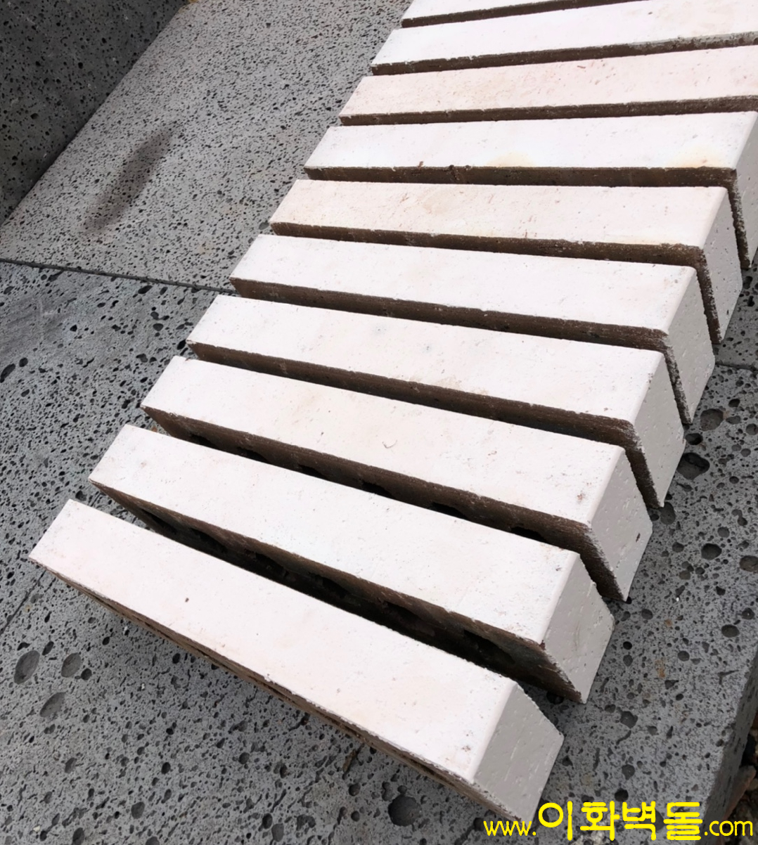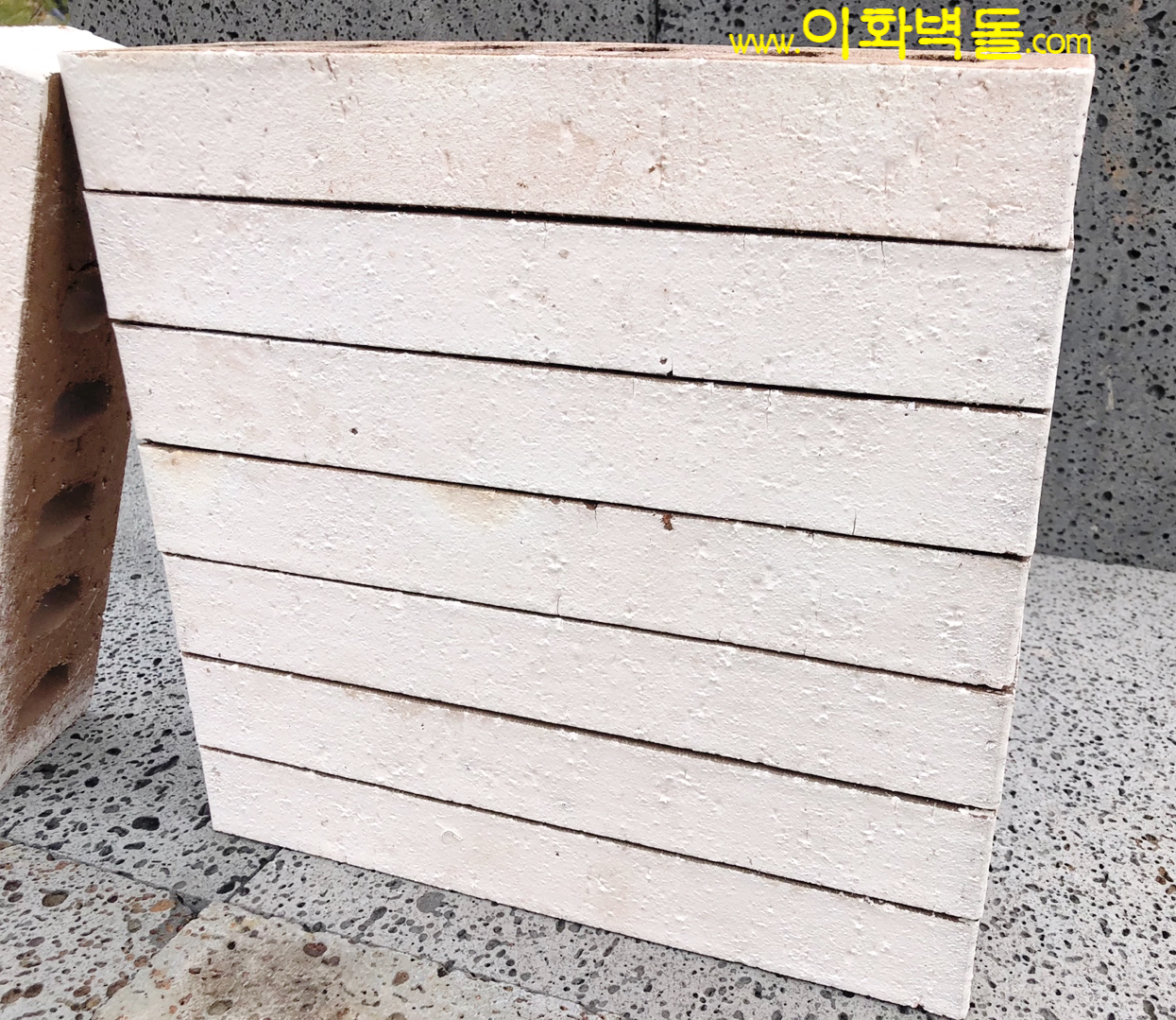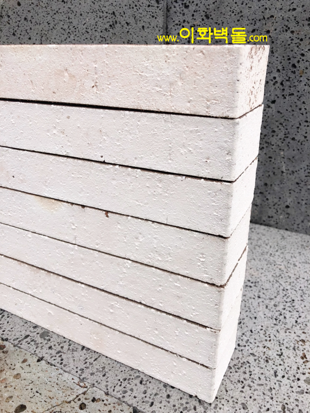 제품명 : 파노라마 화이트 규격 : 340x90x48 m²당 : 47장(줄눈15mm기준) 1p/780장 용도 : 신축건물치장 / 건물외벽재시공 / 실내외인테리어 특징 : 1200℃의 이상 온도로 구워서 만들어진 새로운 사이즈의 유약점토벽돌