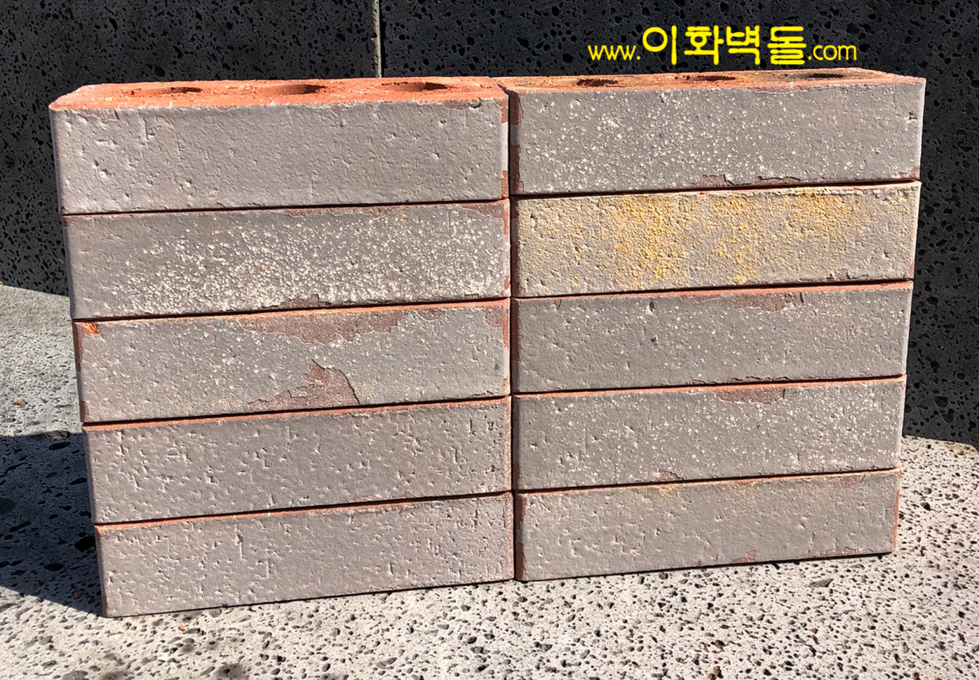 청고 골드벽돌 / 한정수량특가판매 규격 : 230×90×57 m²당 : 60장(줄눈15mm기준) 포장 : 1p/1105장 용도 : 신축건물치장 / 건물외벽재시공 / 실내인테리어 / 구들장벽돌 / 담장벽돌 벽돌에 유약이 약하게 착색되어 사진과 같이 유약 떨어짐 현상이 있습니다. 유약 떨어짐 현상 외 벽돌제품은 다른 이상 없습니다. 저렴한 벽돌을 찾으신다면 청고 골드벽돌 추천합니다.