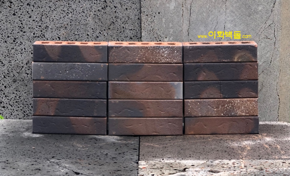 제품명 : 오로라 규격 : 230x90x57 m²당 : 60장(줄눈15mm기준) 포장 : 1p/1105장 용도 : 신축건물치장 / 건물외벽재시공 / 실내인테리어 특징 : 1200℃의 이상 온도로 구워서 만들어진 점토유약벽돌