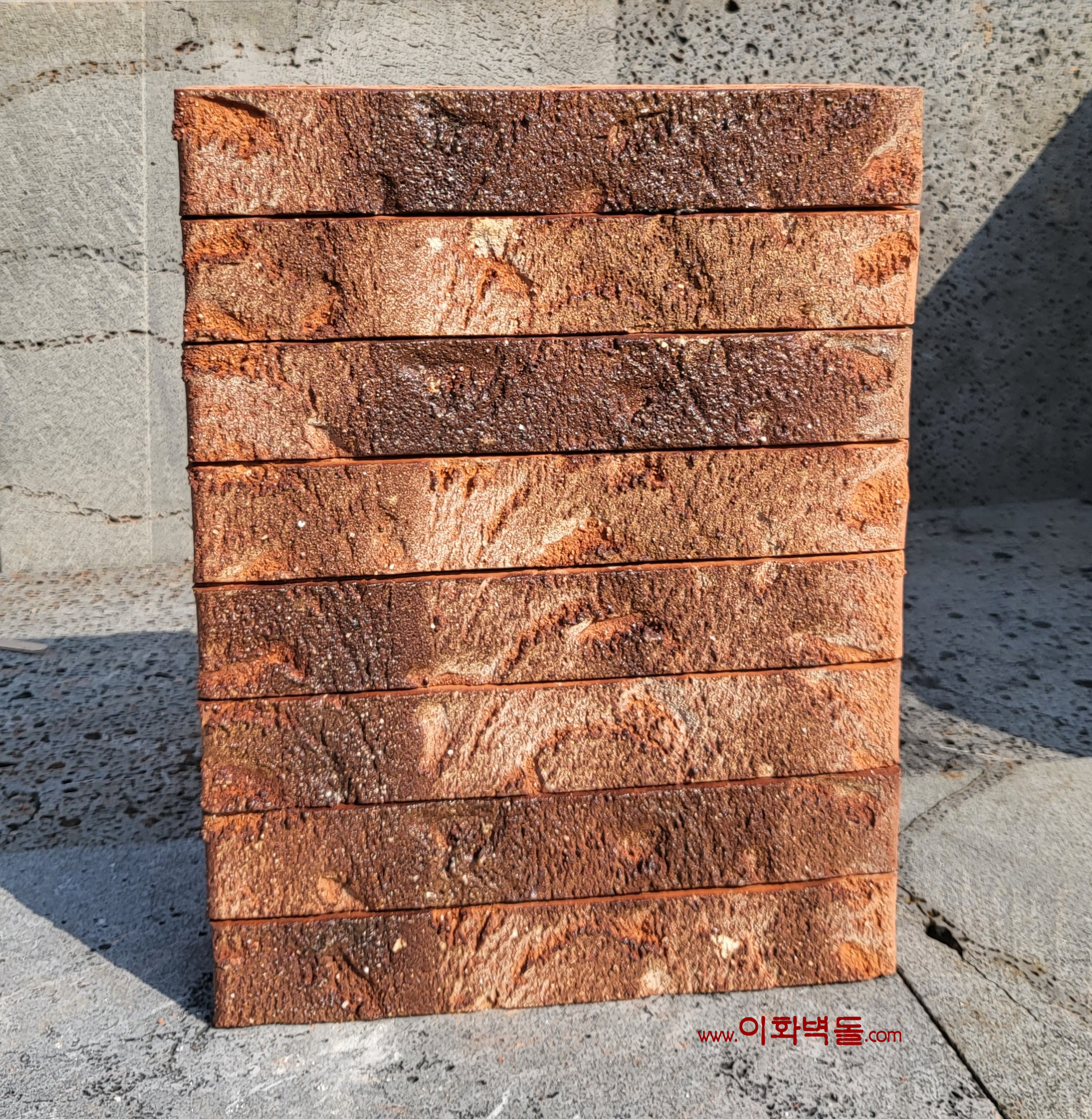 제품명 : 와이드 라바브릭 규격 : 290x90x48 m²당 : 54장(줄눈15mm기준) 포장 : 1p/936장 용도 : 신축건물치장 / 건물외벽재시공 / 실내인테리어 특징 : 1200℃의 이상 온도로 구워서 만들어진 점토벽돌
