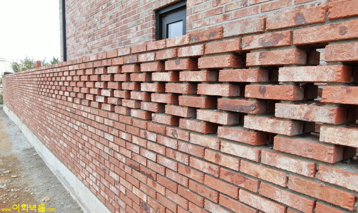 제품명 : 엔틱 고벽돌 규격 : 230x90x57 m²당 : 60장(줄눈15mm기준) 포장 : 1p/1170장 용도 : 신축건물치장 / 건물외벽시공 / 실내인테리어 특징 : 1200℃ 이상의 온도로 구워서 만들어진 국산고벽돌
