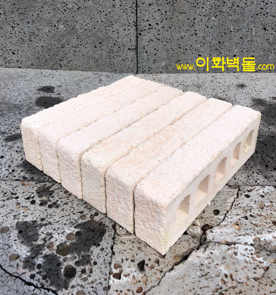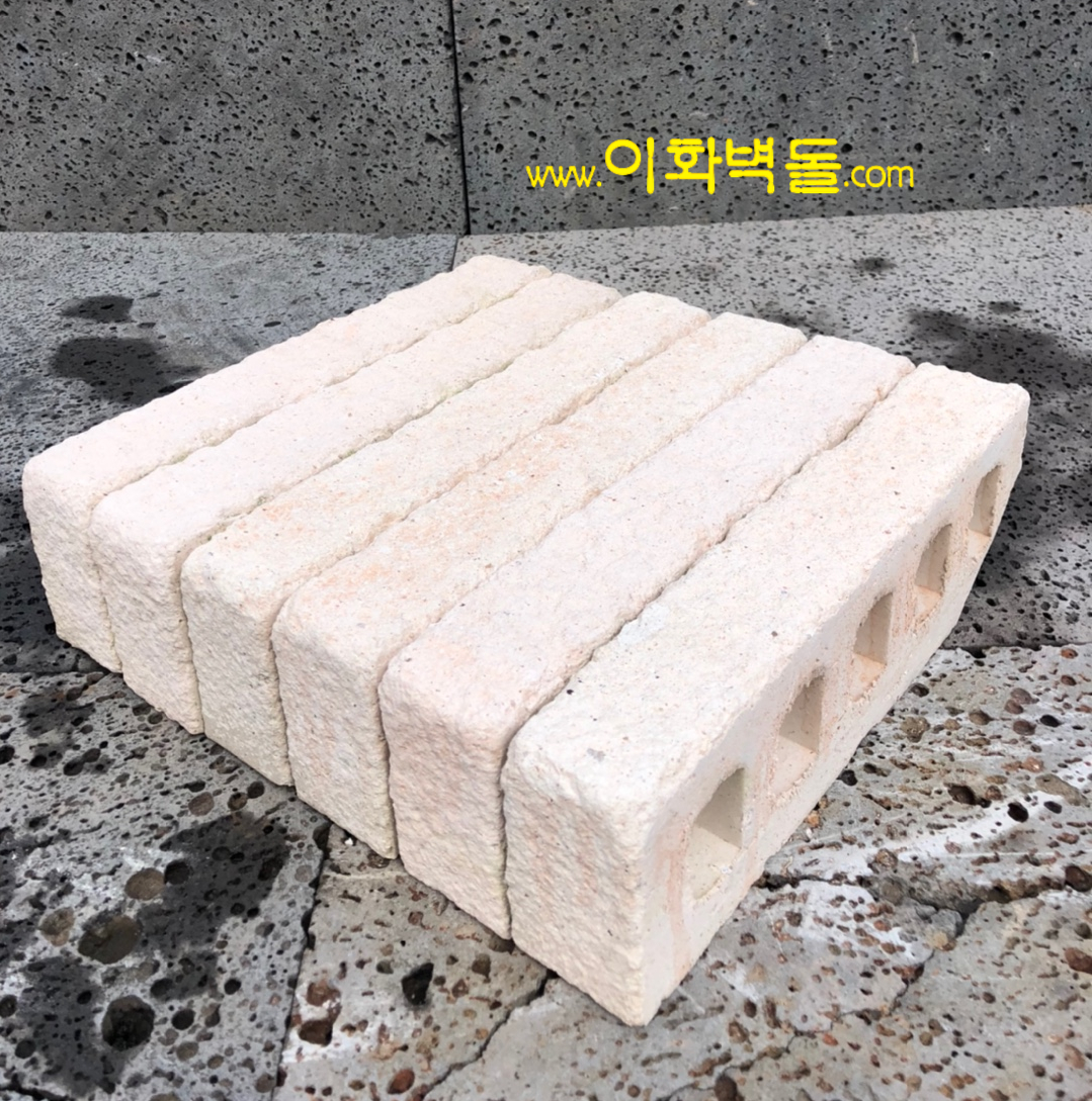 제품명 : 290쇼트 화이트 규격 : 290×90×48 m²당 : 54장(줄눈15mm기준) 포장 : 1p/936장 용도 : 신축건물치장 / 건물외벽 재시공 / 실내인테리어 / 담장 특징 : 점토벽돌의 표면을 거칠게 가공한 벽돌