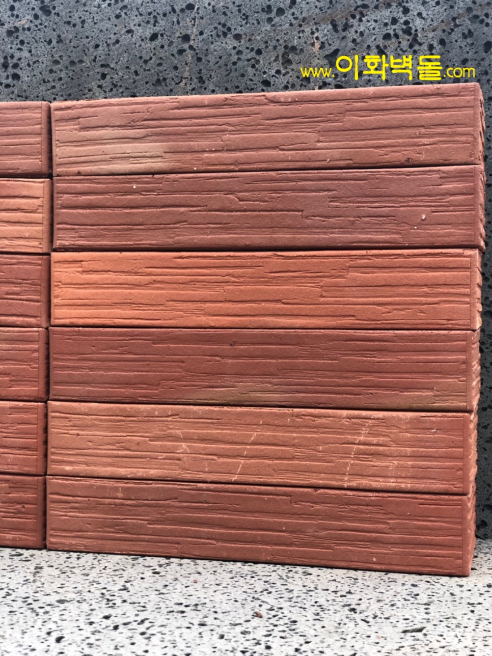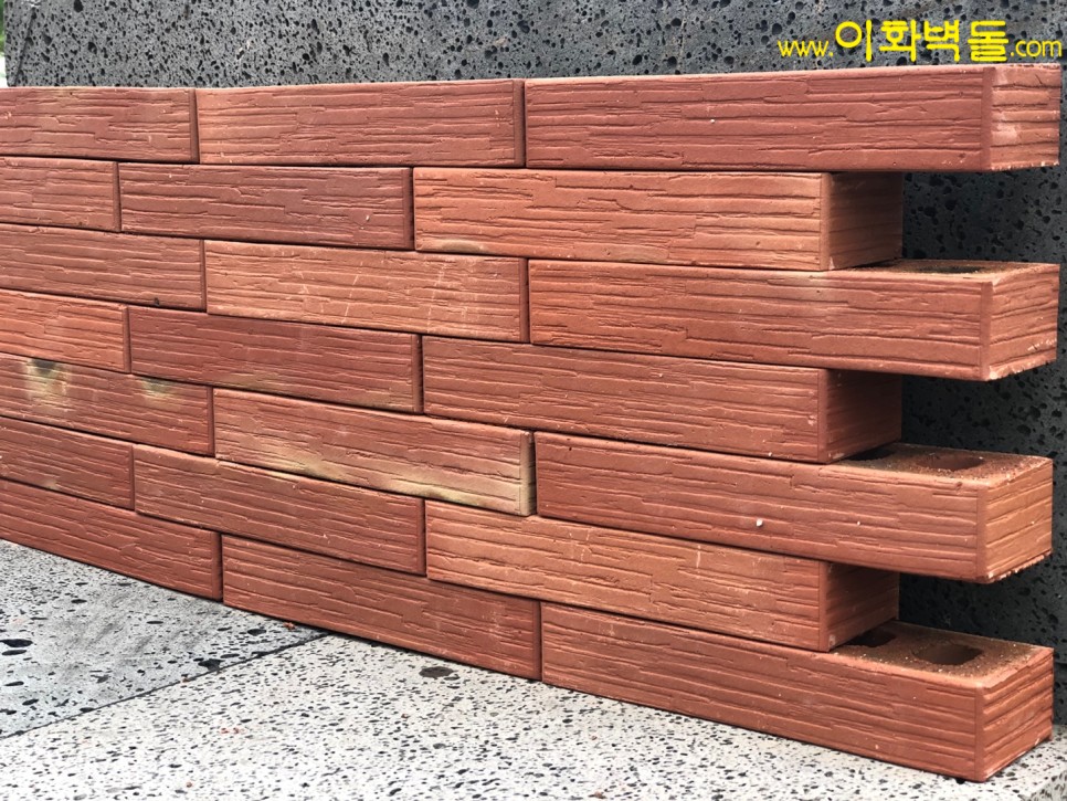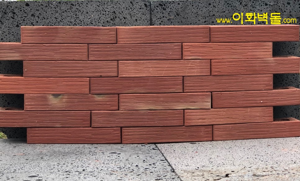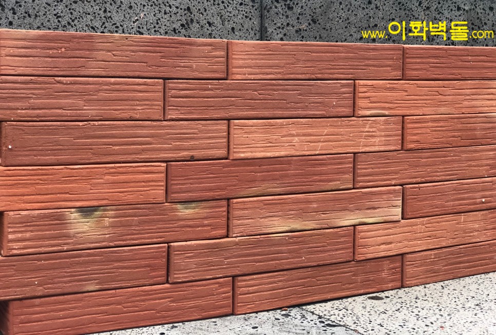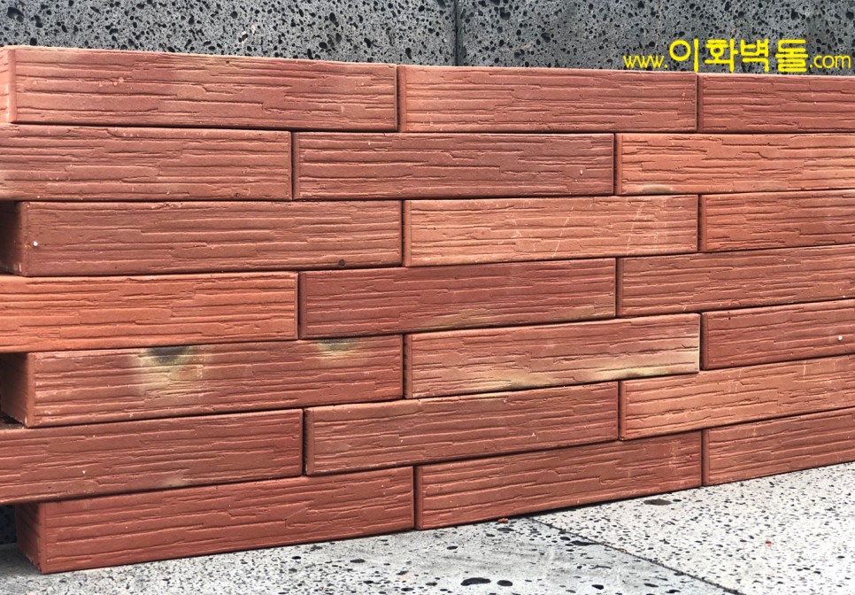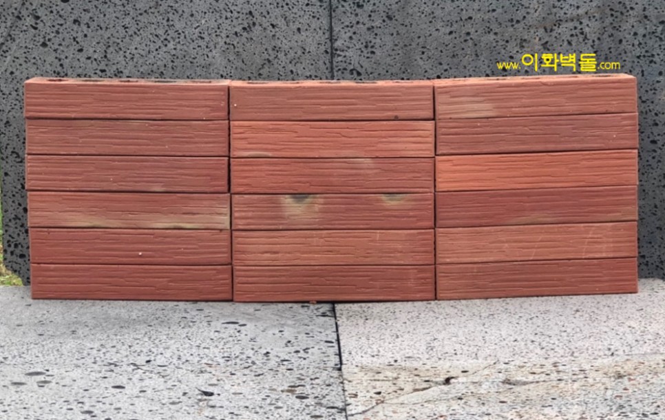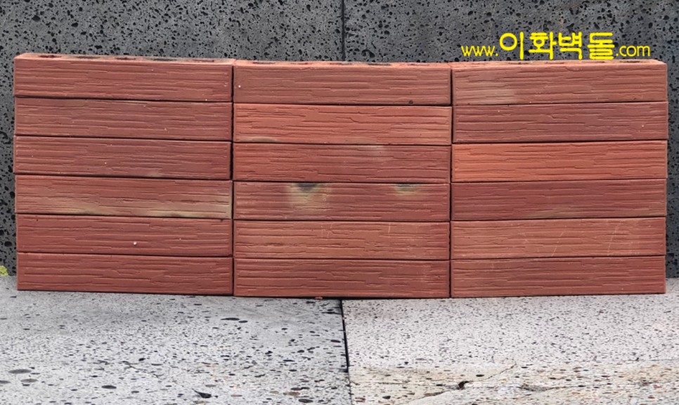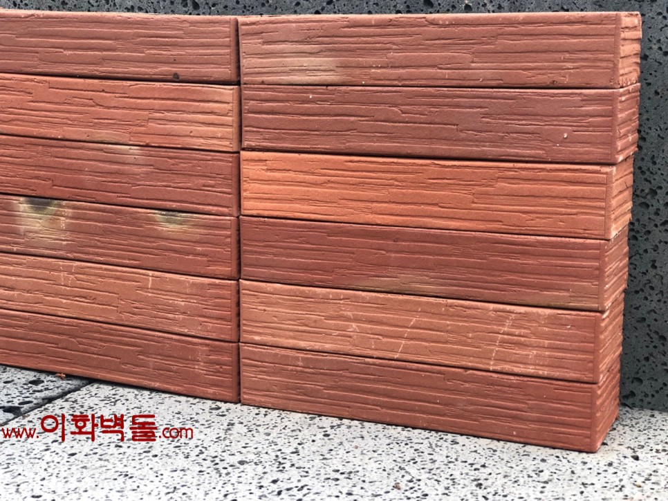 제품명 : 290레드패턴 규격 : 290x90x50 m²당 : 51장(줄눈15mm기준) 1p/960장 용도 : 신축건물치장 / 건물외벽재시공 / 실내인테리어 특징 : 1200℃의 이상 온도로 구워서 만든 점토벽돌 10여 가지의 메지(줄눈시멘트) 칼라로 다양한 시공패턴 연출, 메지(줄눈시멘트) 차이로 다른 분위기를 냅니다.
