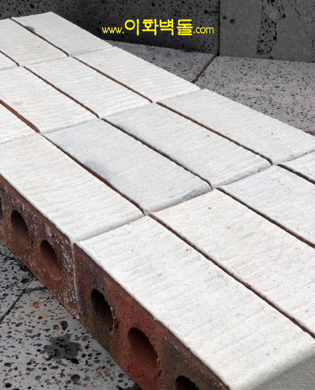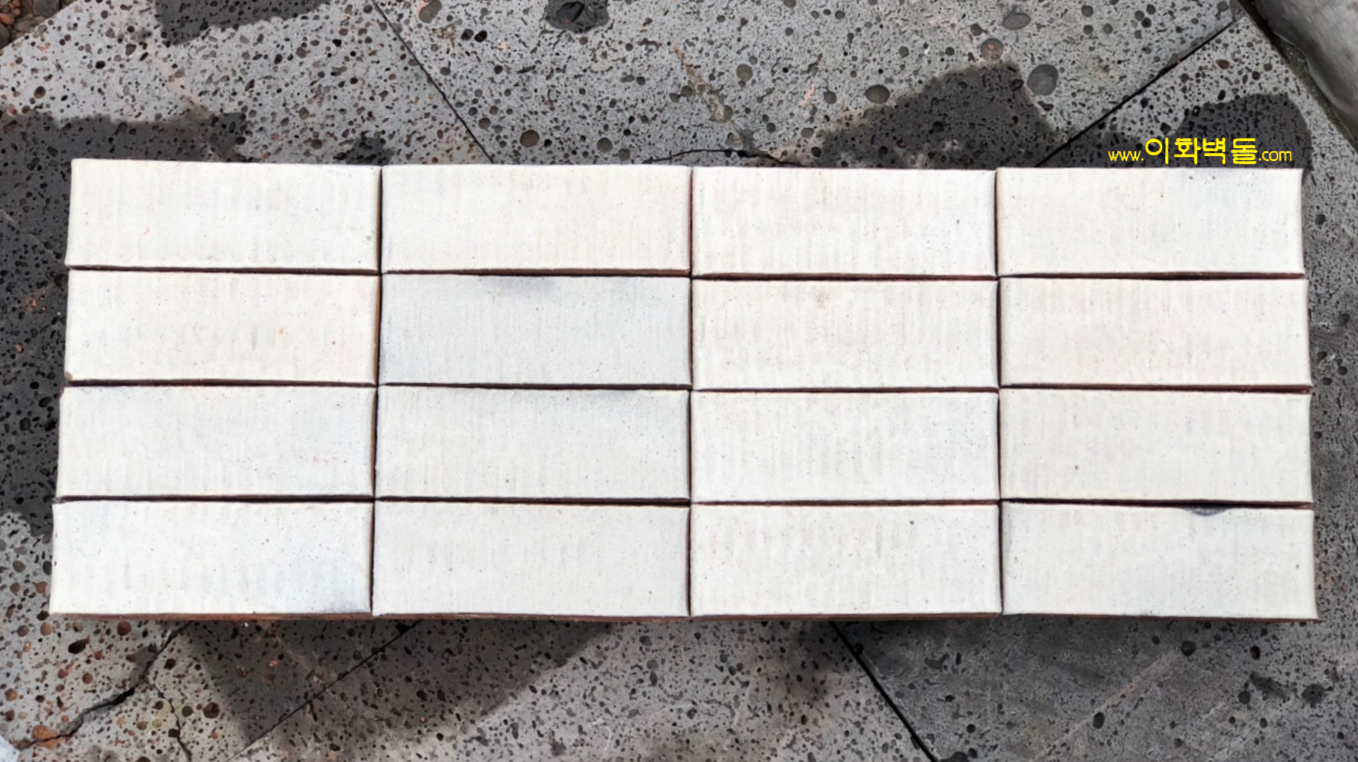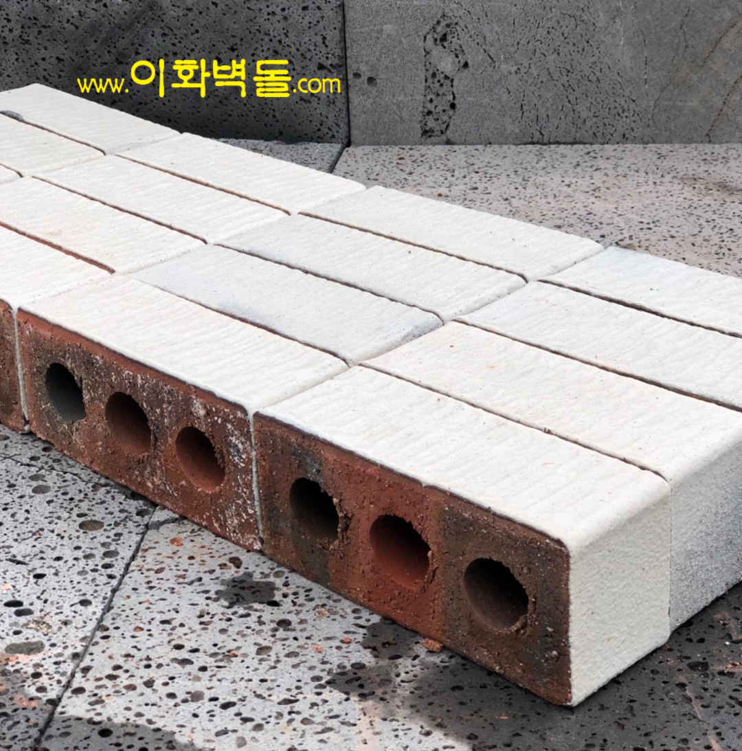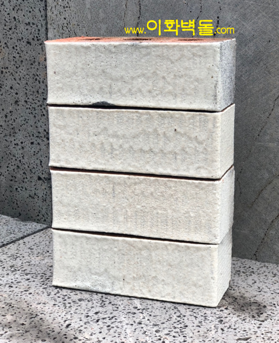제품명 : 미니칼라 화이트 규격 : 205×90×75 m²당 : 50장(줄눈15mm기준) 포장 : 1p/936장 230×90×57 m²당 : 60장(줄눈15mm기준) 포장 : 1p/1300장 용도 : 신축건물치장 / 건물외벽 재시공 / 실내인테리어 특징 : 1200℃의 이상 온도로 구워서 만들어진 유약벽돌