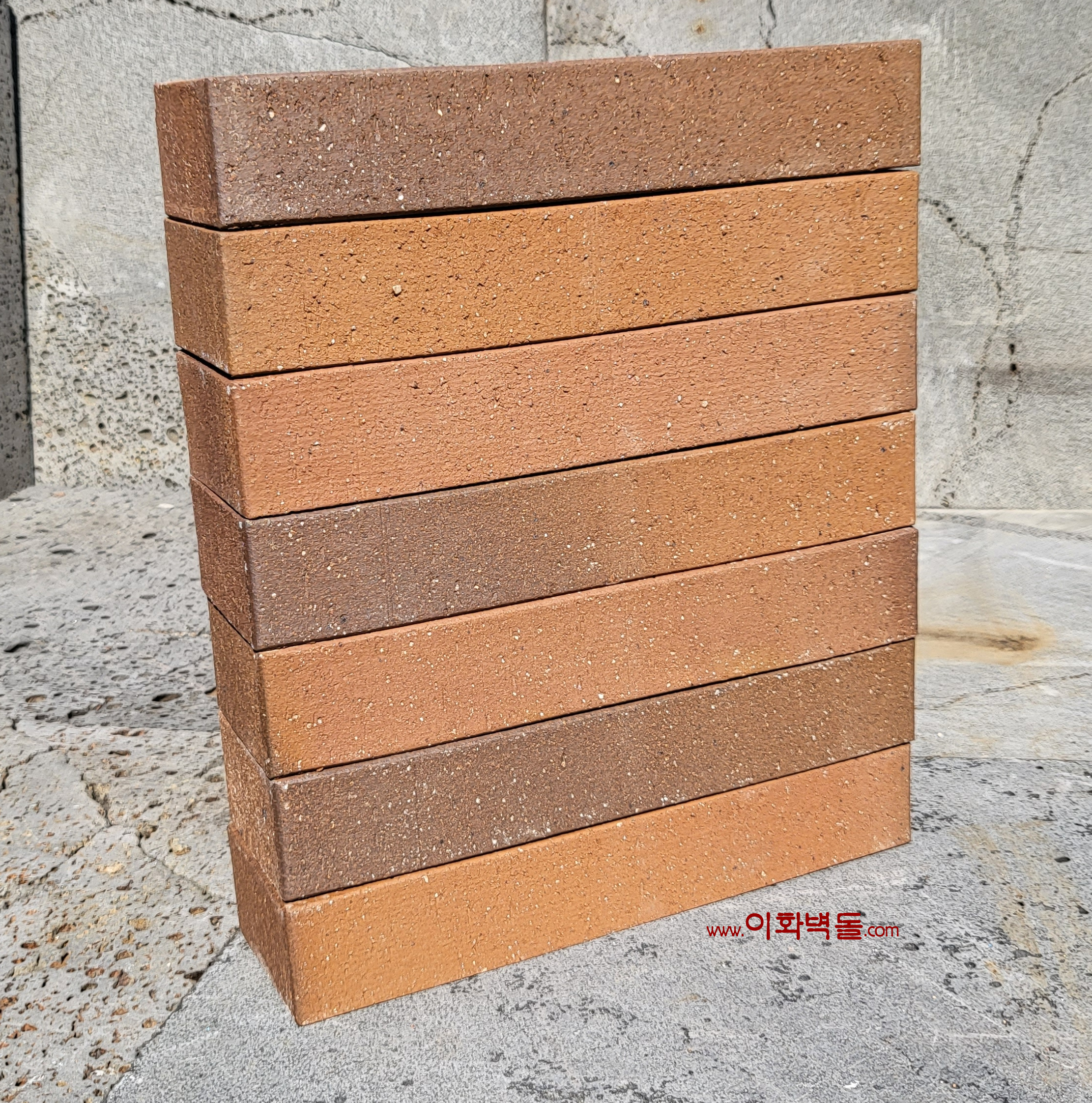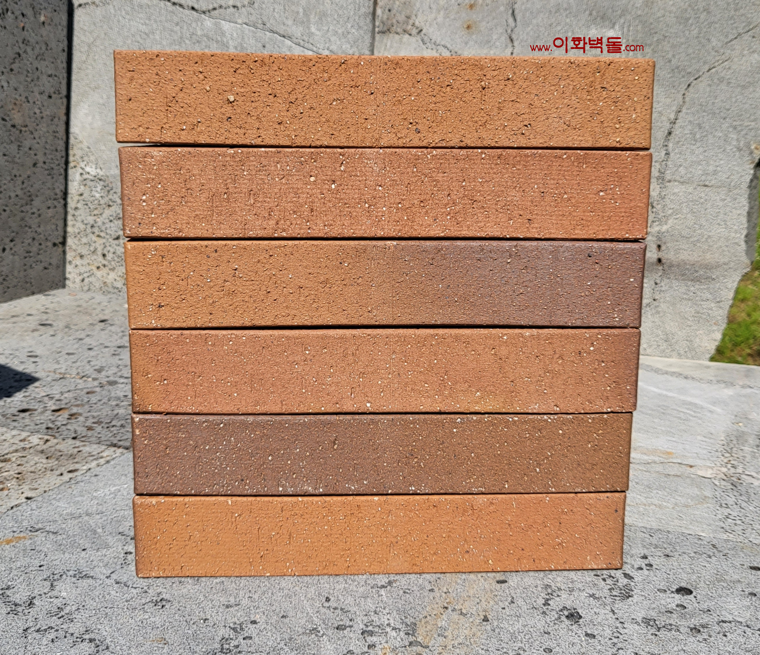 제품명 : 와이드 골드 토석 규격 : 290x90x50 m²당 : 52장(줄눈15mm기준) 1p/648장 용도 : 신축건물치장 / 건물외벽재시공 / 실내외인테리어 특징 : 1200℃의 이상 온도로 구워서 만들어진 후레싱 점토 벽돌 기존의 일반사이즈 후레싱 골드 토석을 290사이즈로 만들어낸 와이드 점토벽돌