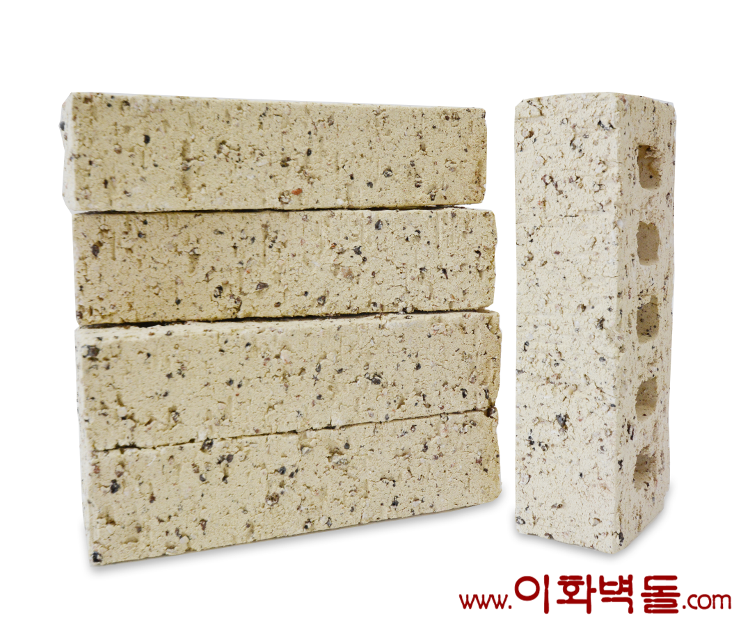 제품명 : 스페이스 루나 규격 : 230x90x57 m²당 : 60장(줄눈15mm기준) 1p/1020장 장당중량 : 1.8kg / 1p중량 1836kg / 25톤차 15p = 15,300장 = 27,540kg 용도 : 신축건물치장 / 건물외벽시공 / 실내인테리어 특징 : 1200℃ 이상의 온도로 구워낸 고령토 화이트벽돌