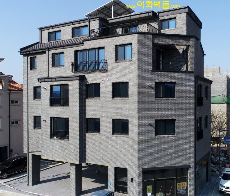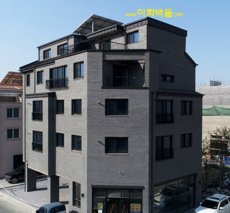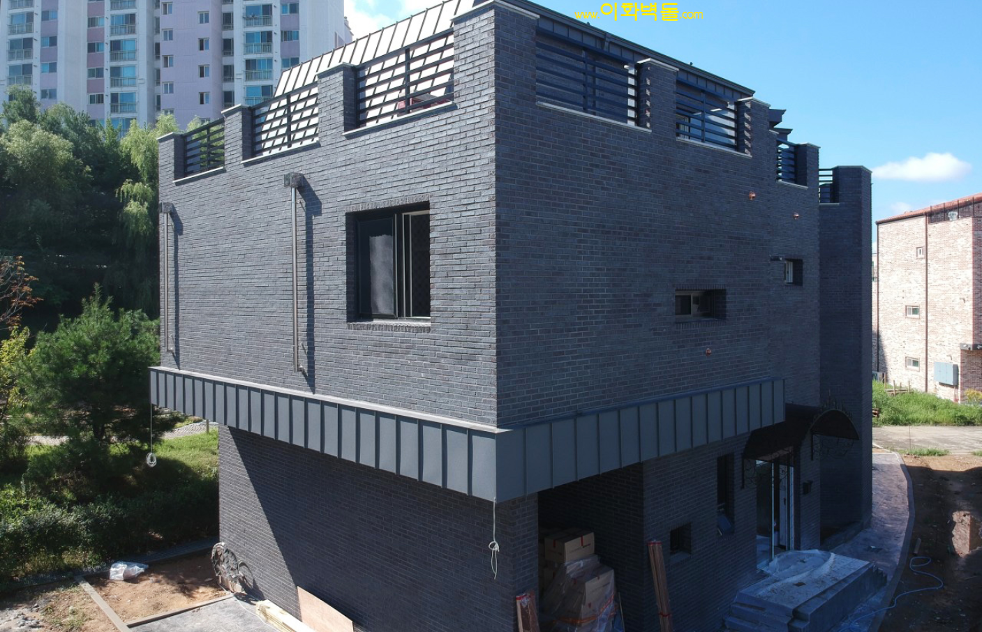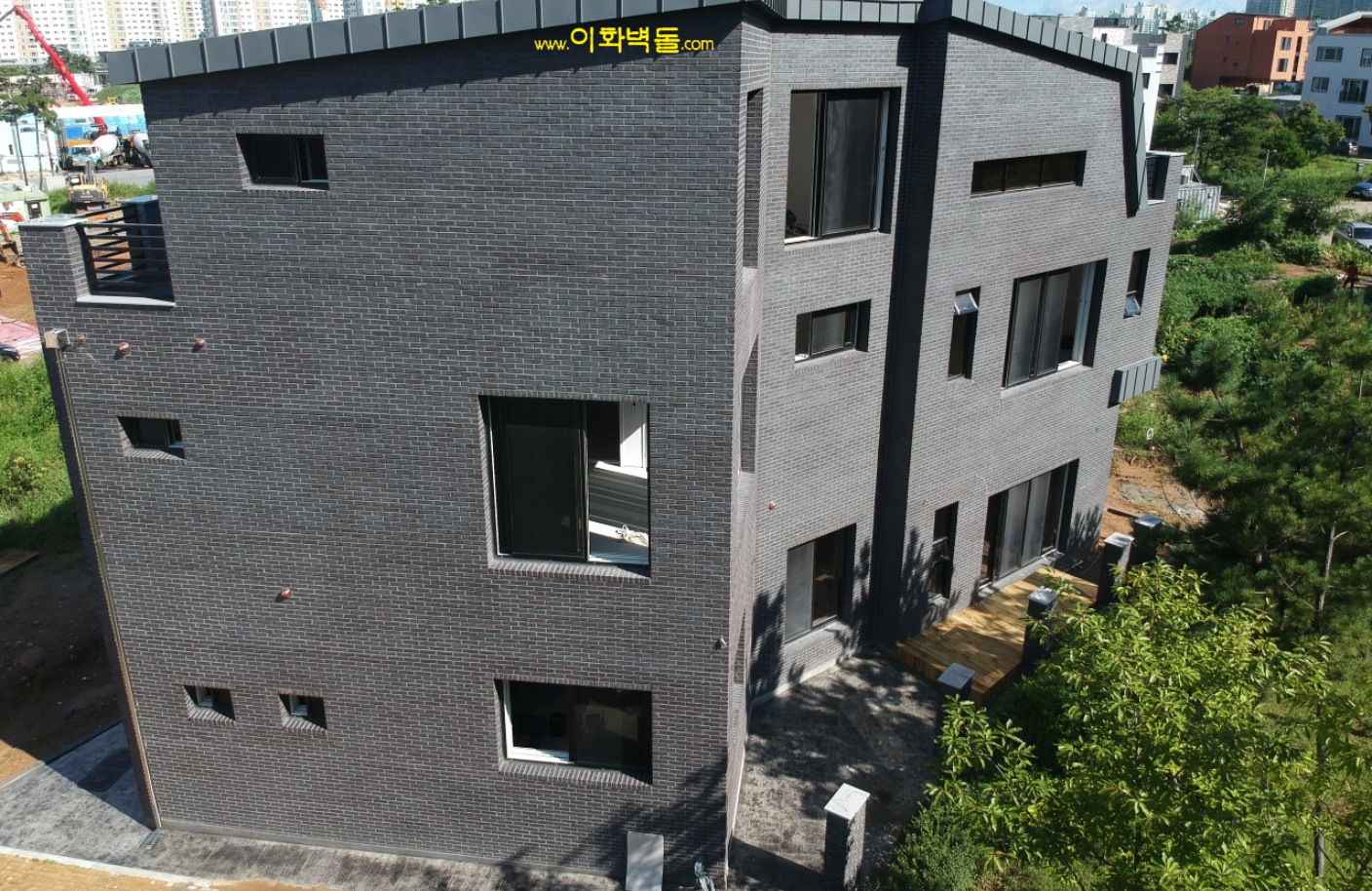 블랙홀(9장) + 밀키웨이(1장) = 스페이스 A 제품명 : 블랙홀 규격 : 230x90x57 m²당 : 60장(줄눈15mm기준) 1p/1,020장 장당중량 : 1.8kg / 1p중량 1836kg / 25톤차 15p = 15,300장 = 27,540kg 용도 : 신축건물치장 / 건물외벽시공 / 실내인테리어 특징 : 1200℃ 이상의 온도로 구워서 만들어진 푸르스름한 검정계통 점토유약벽돌