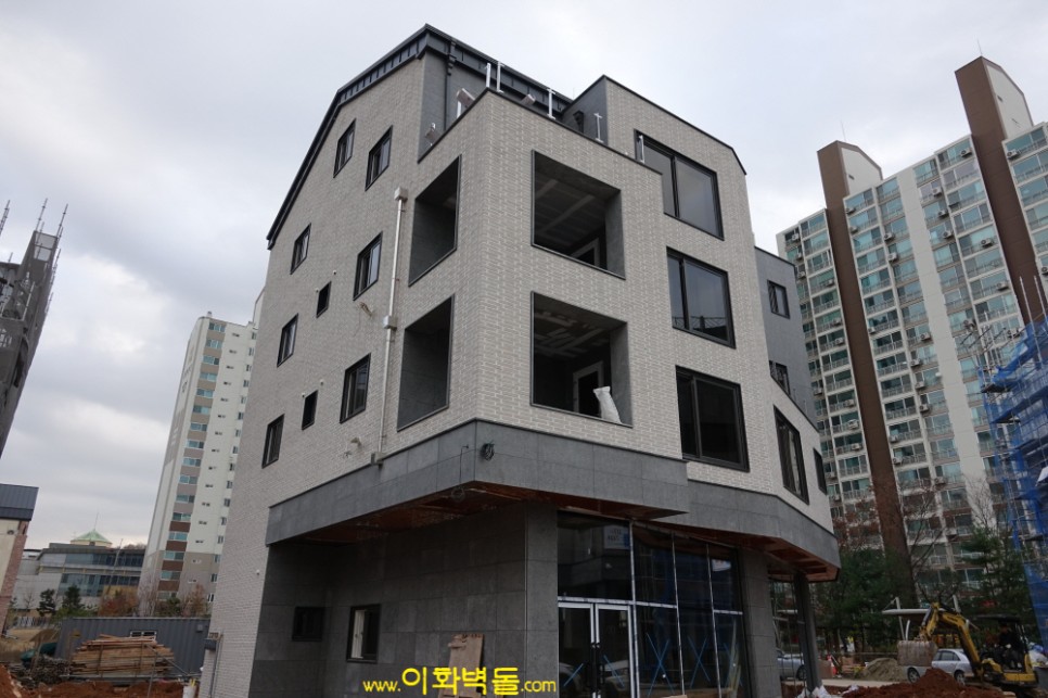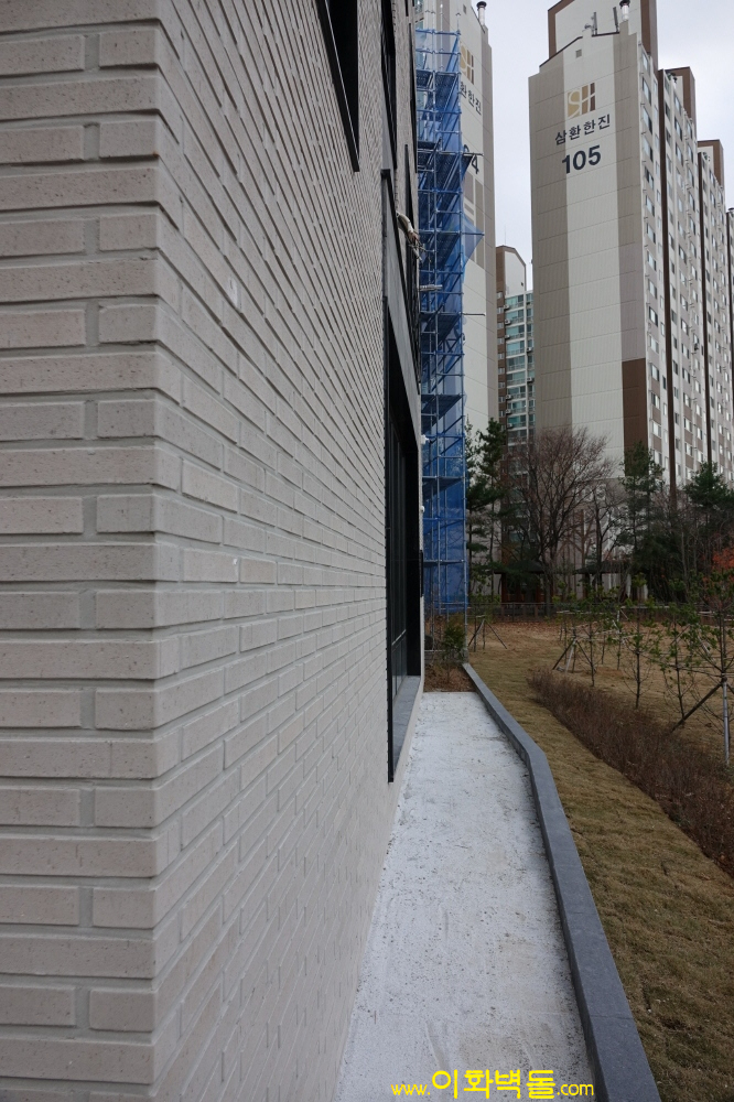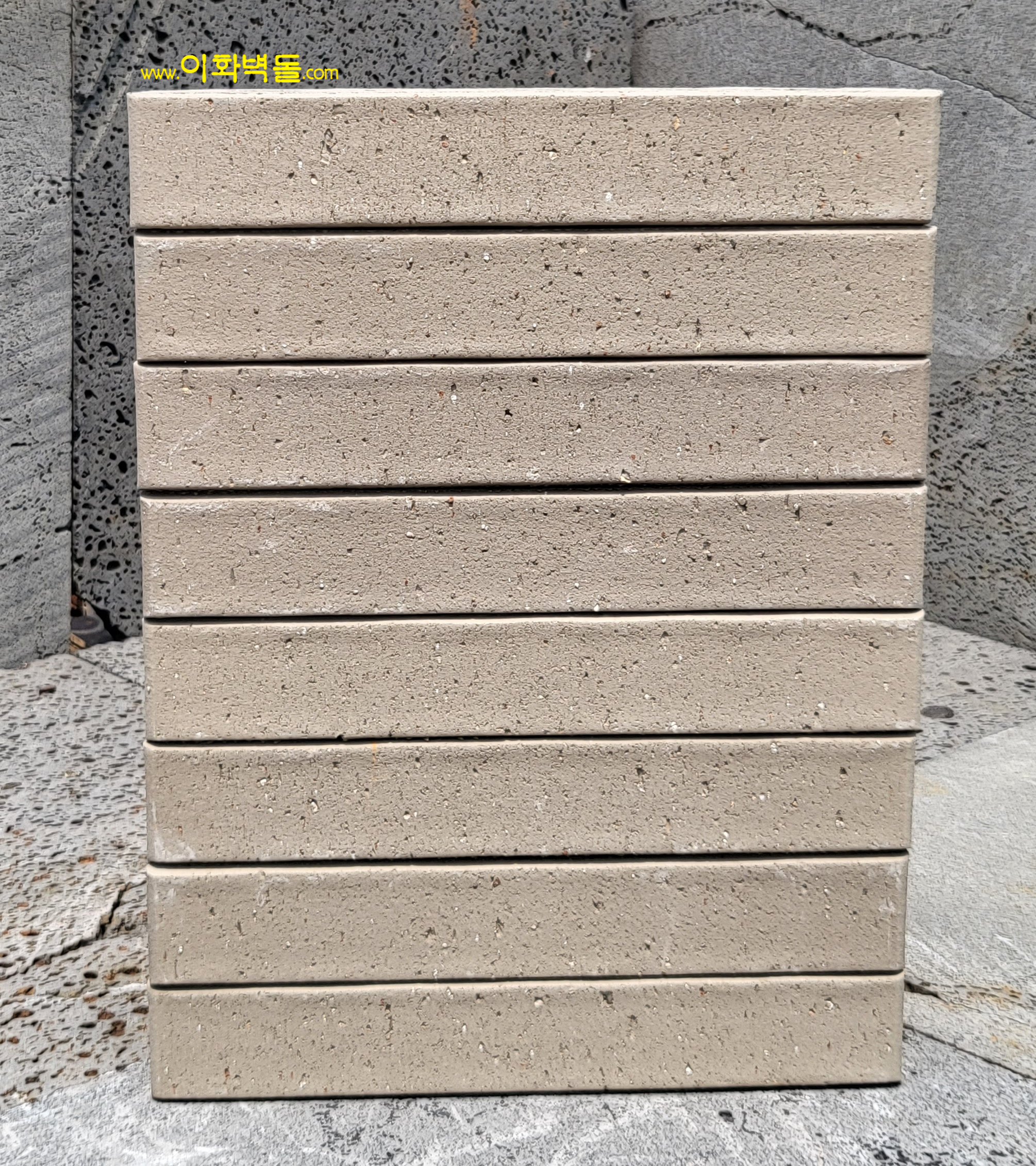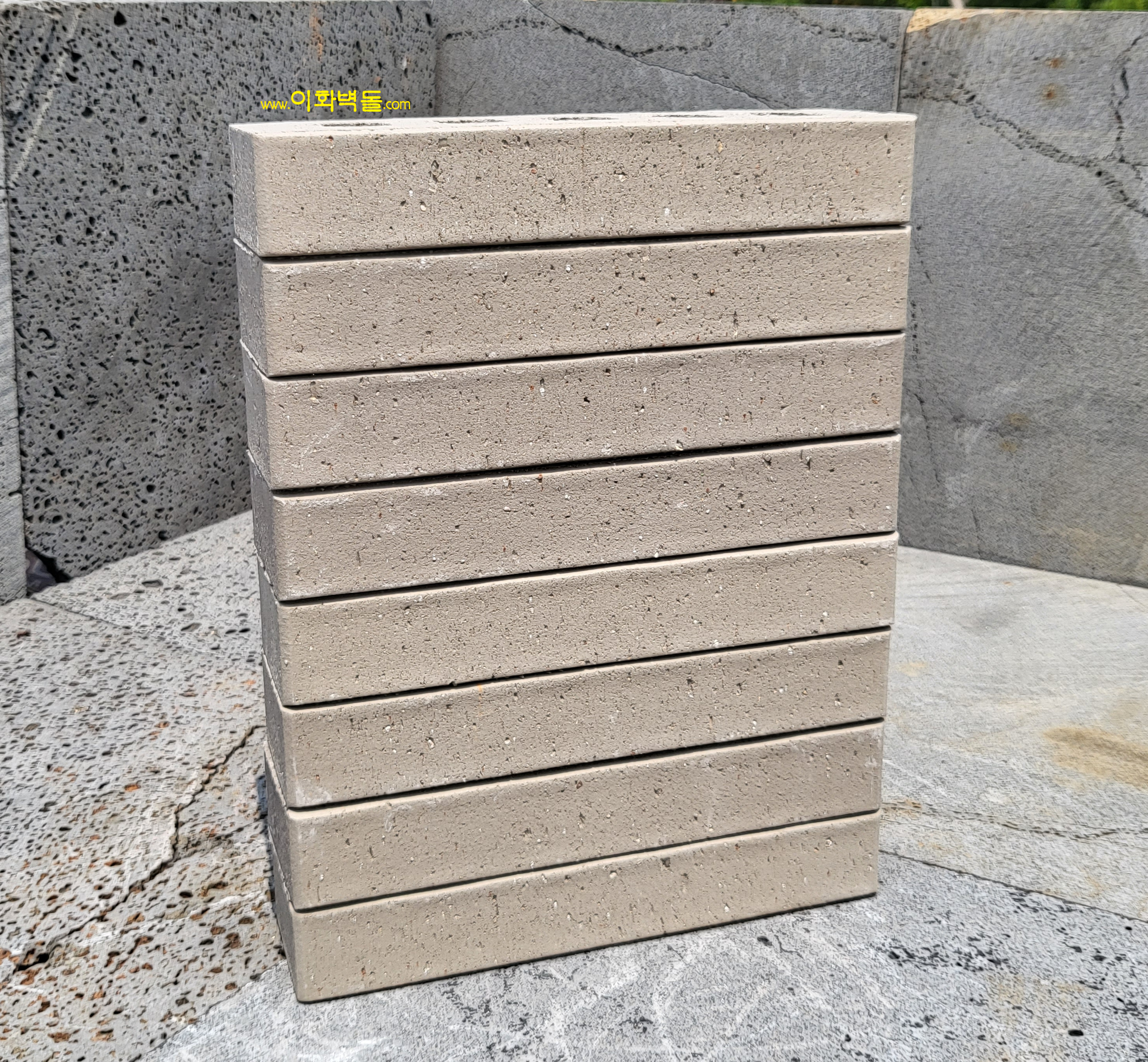 제품명 : 올 그레이 규격 : 300x90x50 m²당 : 49장(줄눈15mm기준) 1p/1040장 용도 : 신축건물치장 / 건물외벽시공 / 실내인테리어 특징 : 1200℃ 이상의 온도로 구워낸 점토벽돌