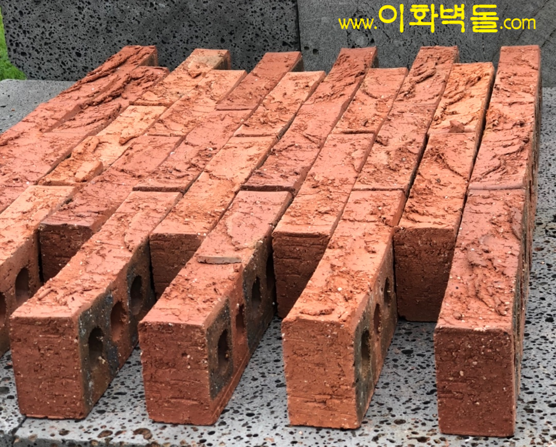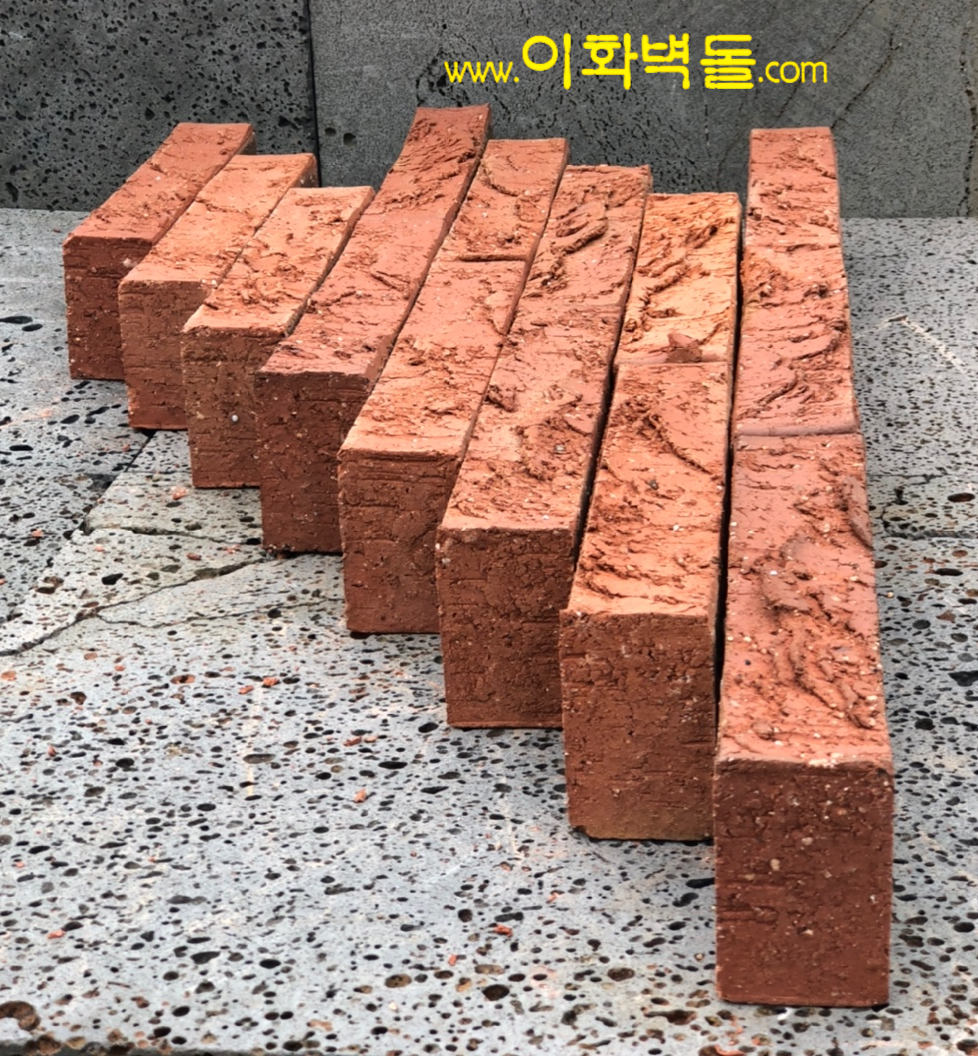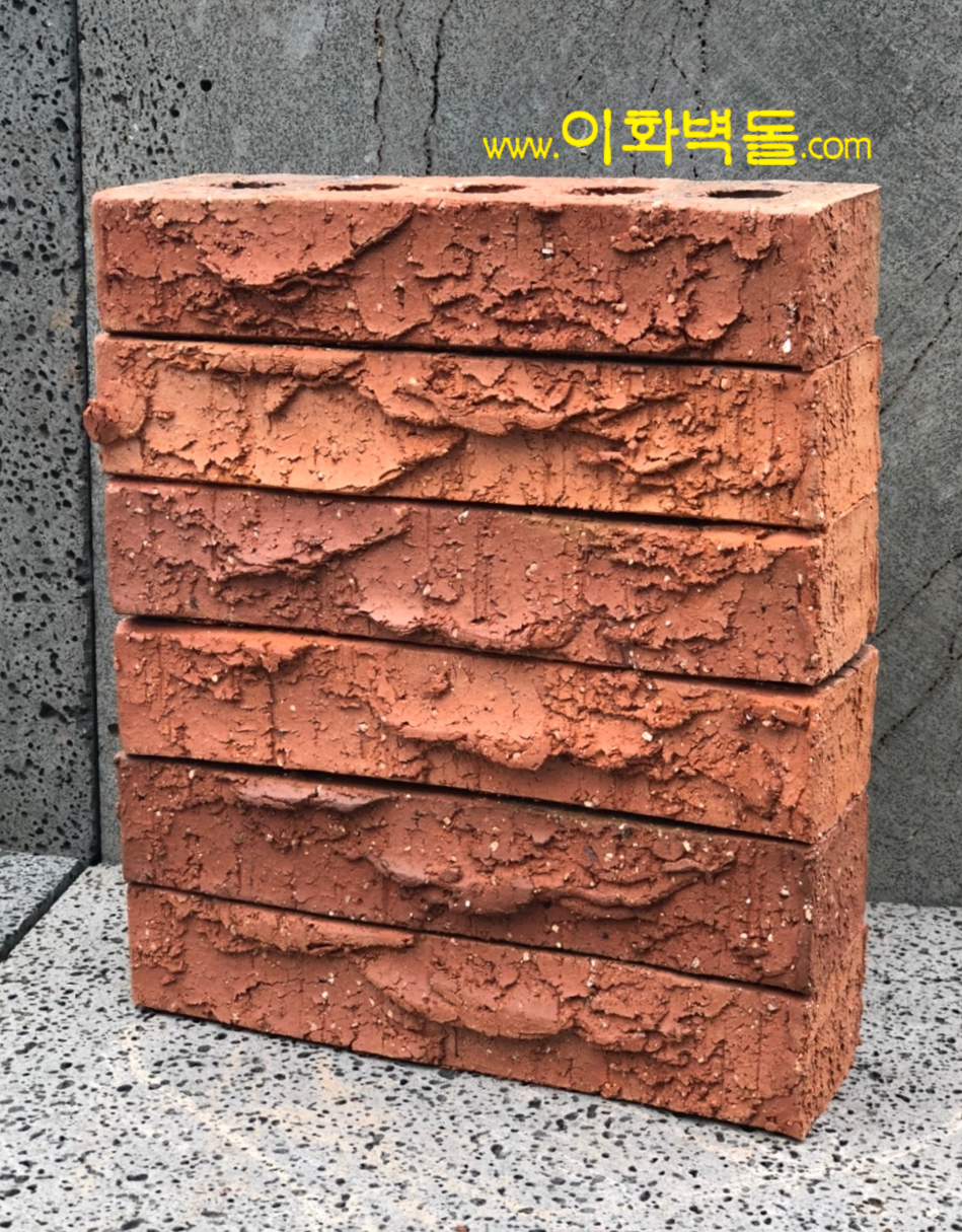 제품명 : 크레이 레드 터프 규격 : 290x90x57 m²당 : 50장(줄눈15mm기준) 1p/884장 용도 : 신축건물치장 / 건물외벽재시공 / 실내외인테리어 특징 : 1200℃의 이상 온도로 구워서 만들어진 터프한 질감의 점토벽돌