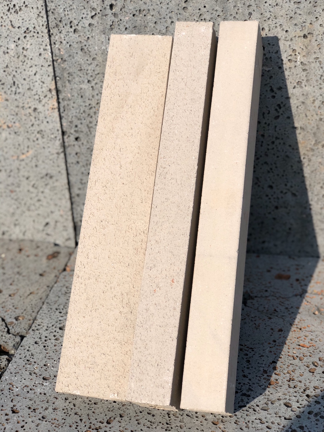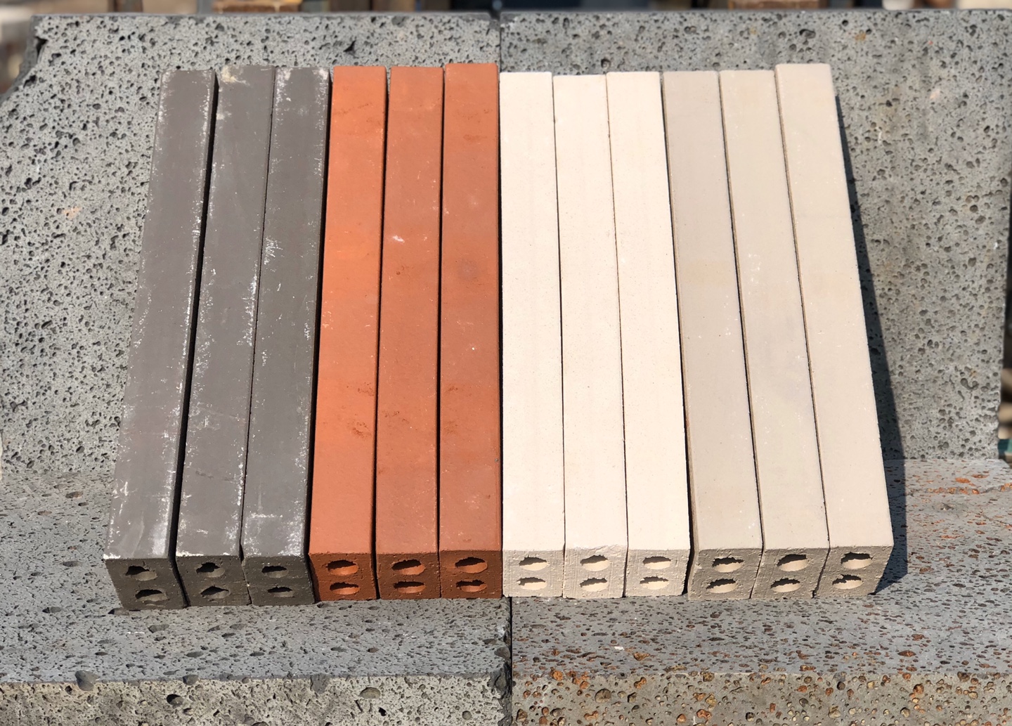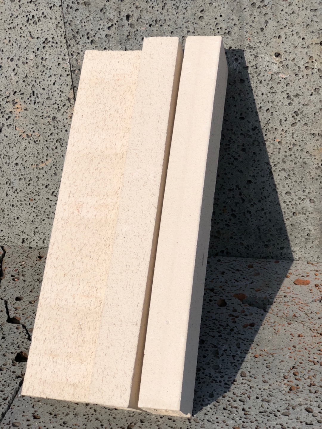 500사이즈 벽돌로 옆면에 구멍이 있으며 50부분의 한면은 면이 고운 미장 면이고 다른 한면은 토석 면입니다