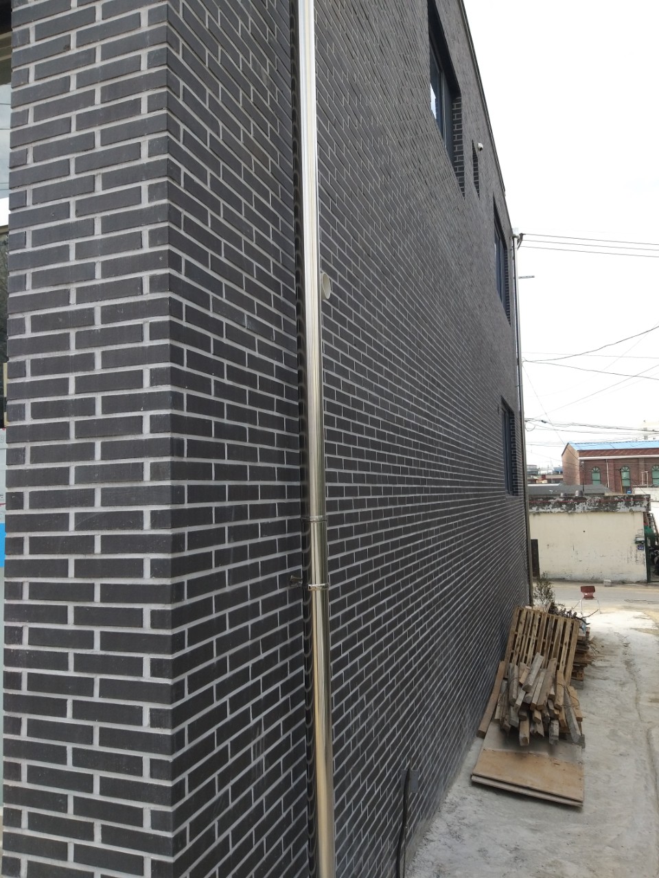 제품명 : WS240블랙미장 규격 : 240×72×57 m²당 : 58장(줄눈15mm기준) 포장 : 1p/900장 용도 : 신축건물치장 / 건물외벽 재시공 / 실내인테리어 특징 : 1200℃의 이상 온도로 구워서 만들어진 면이 고운 검정색점토벽돌