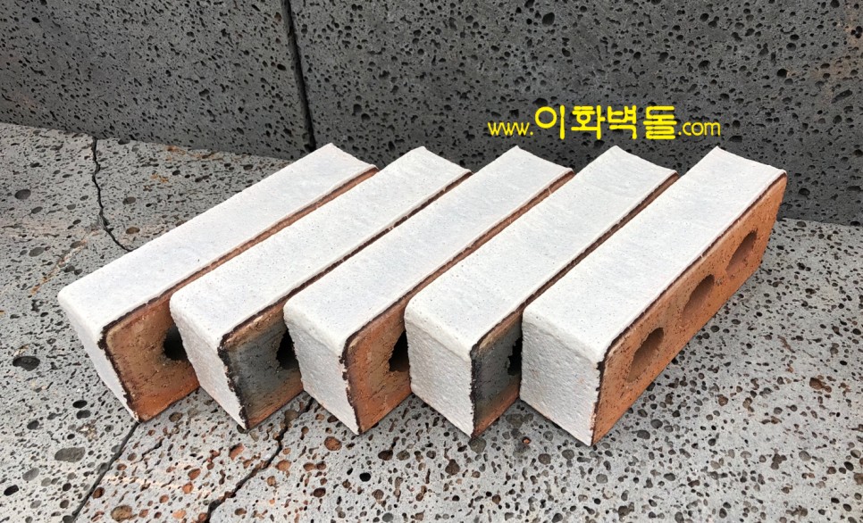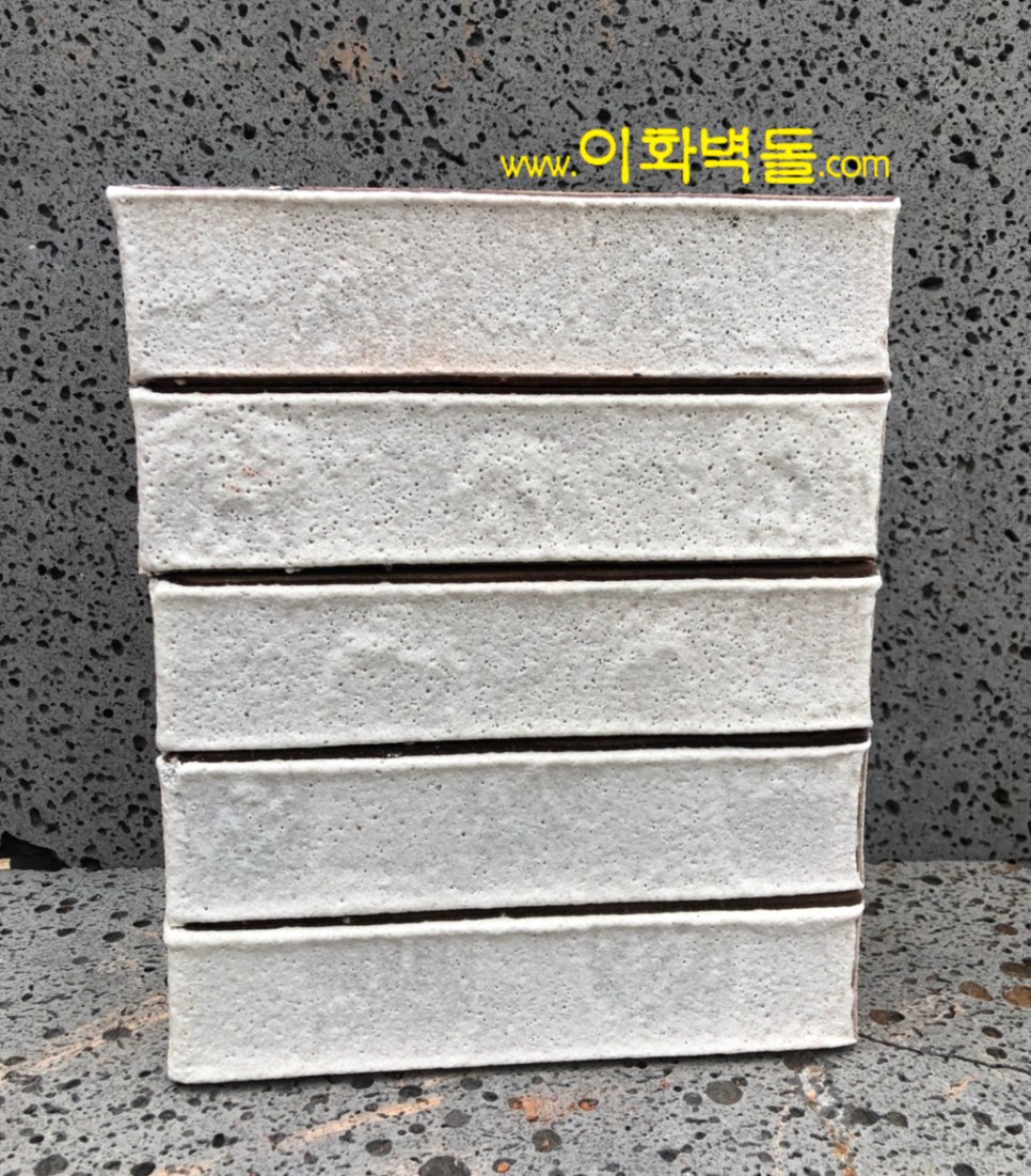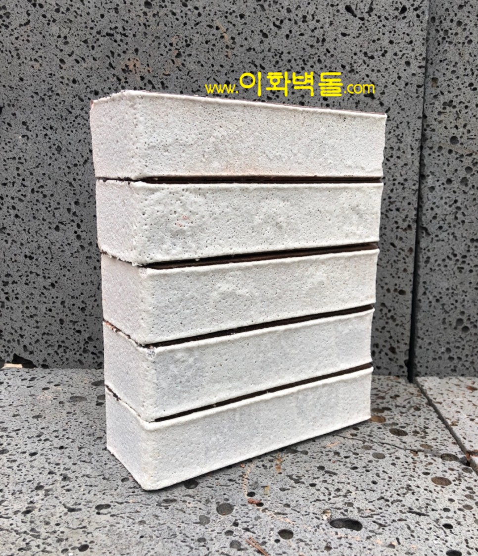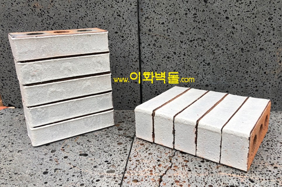 유약화이트 규격 : 230x90x57 m²당 : 60장(줄눈15mm기준) 1p/1105장 290x90x50 m²당 : 50장(줄눈15mm기준) 1p/936장 용도 : 신축건물치장 / 건물외벽시공 / 실내인테리어 특징 : 1200℃ 이상의 온도로 구워진 유약점토벽돌