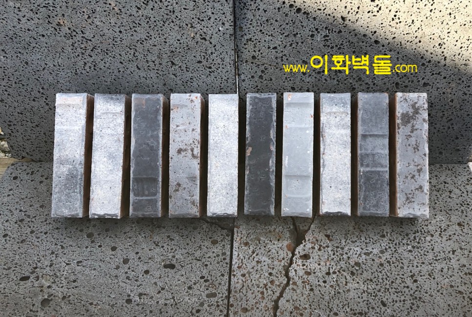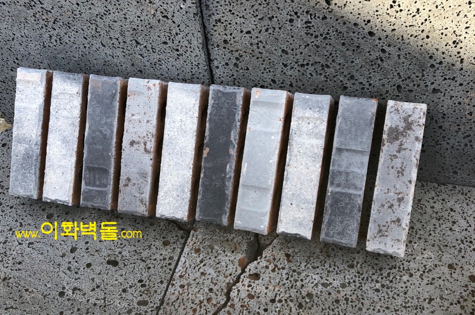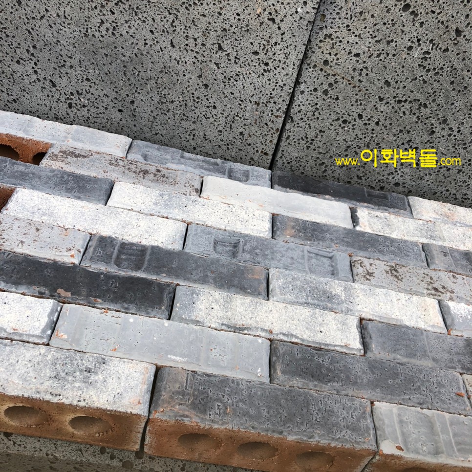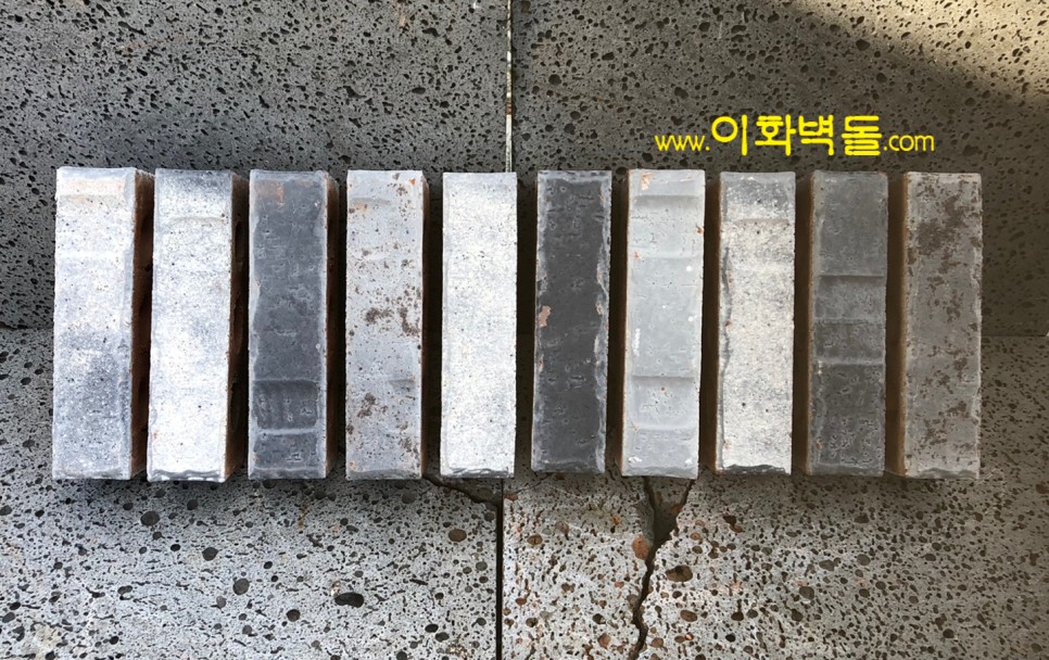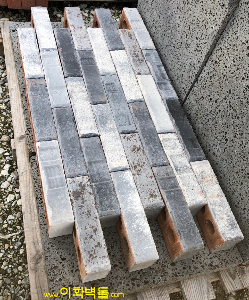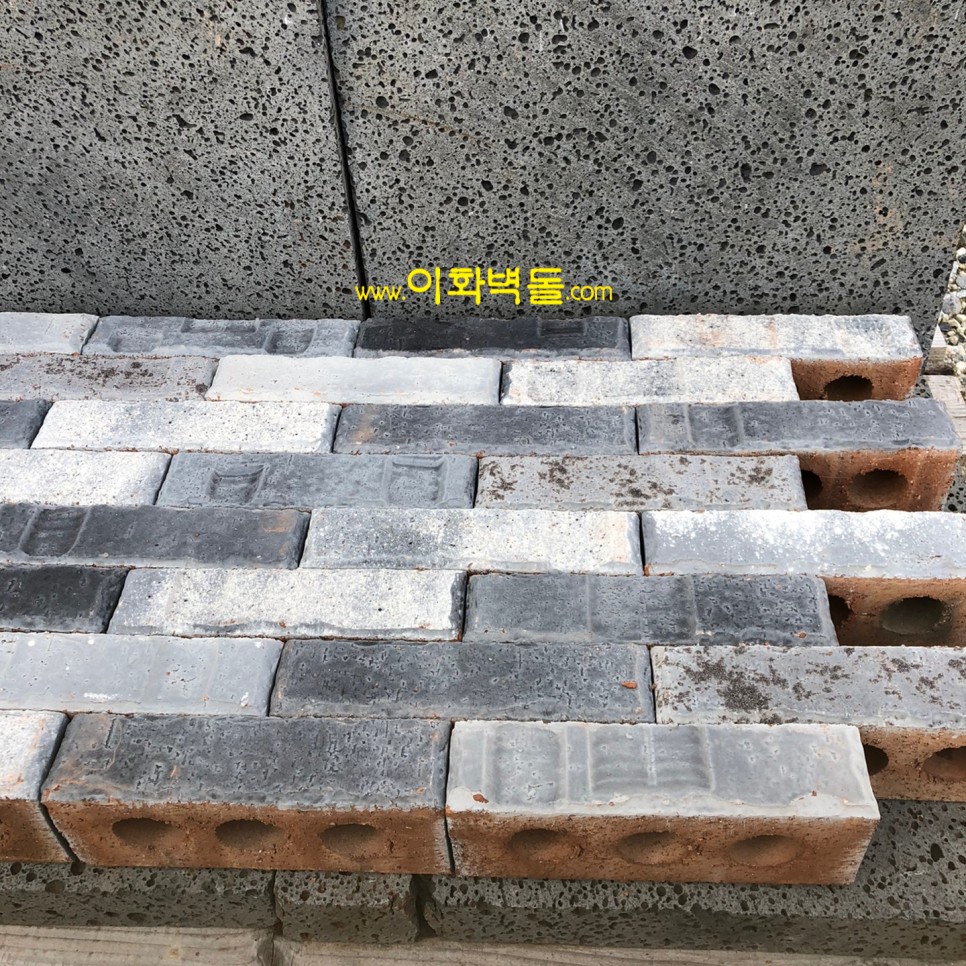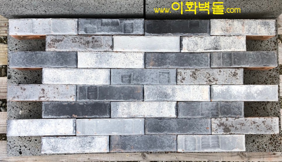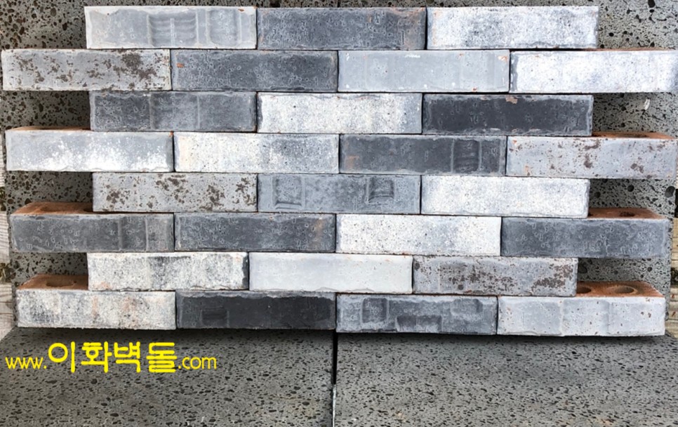 벽돌마다 음각의 무늬가 포인트인 신제품 국산청고벽돌입니다