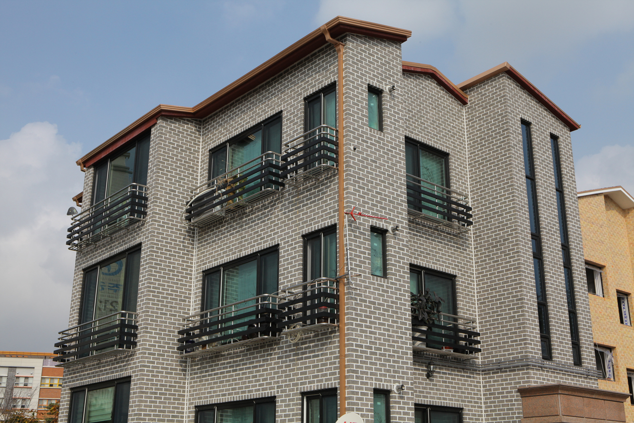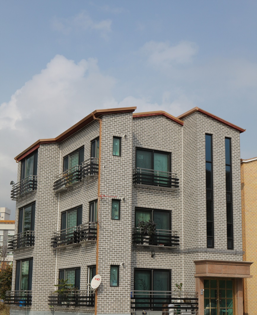 명품 칼라스톤 그레이 SIZE : 205x90x75 m²/49장 (1P/832) 명품 칼라스톤 그레이는 포인트로 많이 사용하는 제품입니다. 특히 기본 제품의 포인트를 살려서 프리미엄을 높일 수 있는 점토벽돌입니다. 표면을 특수칼라 코팅처리로 매끄럽고 산뜻한 느낌을 줍니다. 10여 가지의 메지(줄눈시멘트) 칼라로 다양한 시공패턴 연출, 메지(줄눈시멘트) 차이로 다른 분위기를 냅니다.