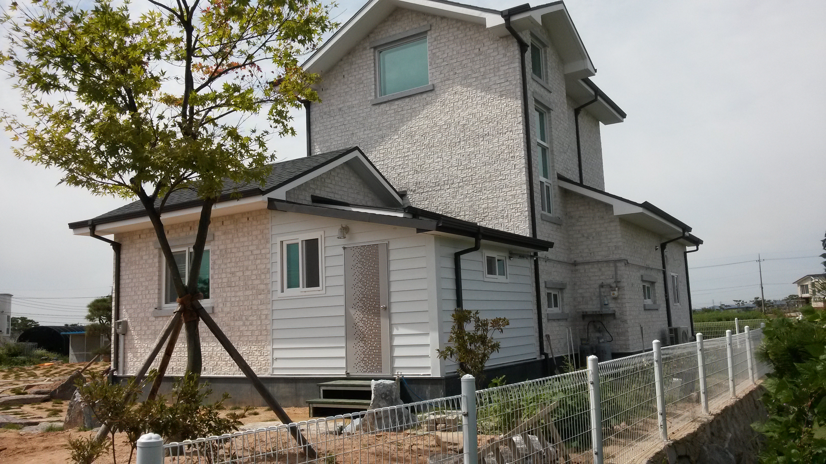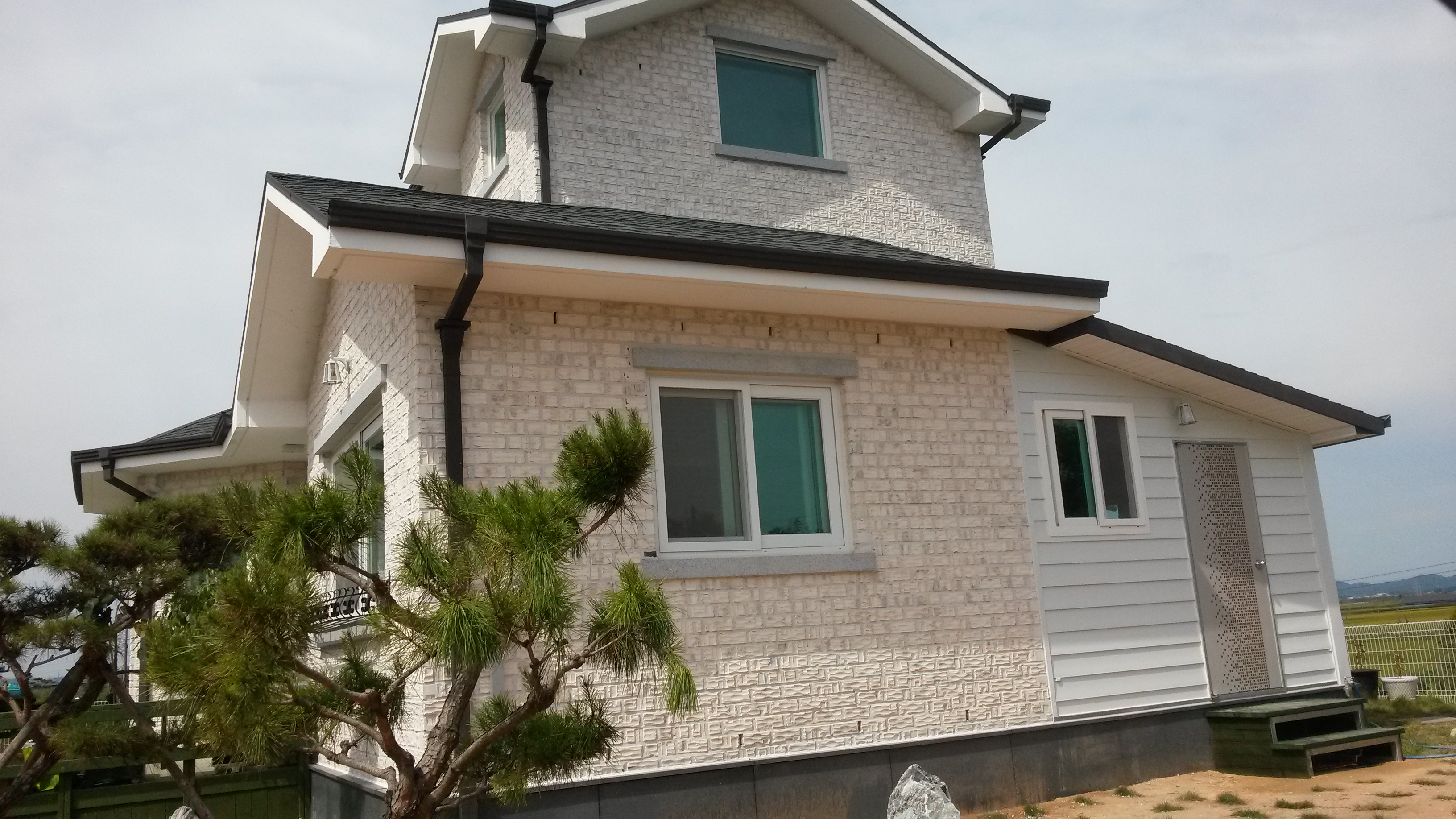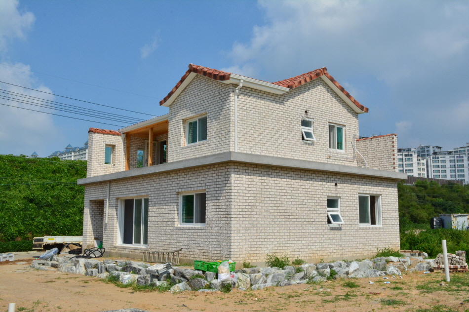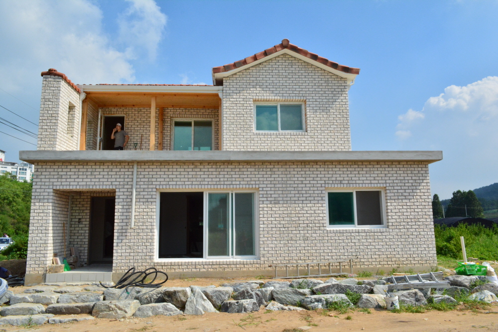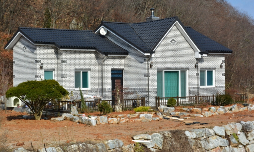명품 뉴화이트/생산중단/주문생산 SIZE : 205x90x75 m²/49장 (1P/832) 아이보리 색을 살짝 곁들이 뉴화이트 점토벽돌은 주택의 품격을 높여주는 고품격 외부 치장재입니다. 10여 가지의 메지(줄눈시멘트) 칼라로 다양한 시공패턴 연출, 메지(줄눈시멘트) 차이로 다른 분위기를 냅니다. 시공사진은 뉴화이트 + 청고벽돌 입니다