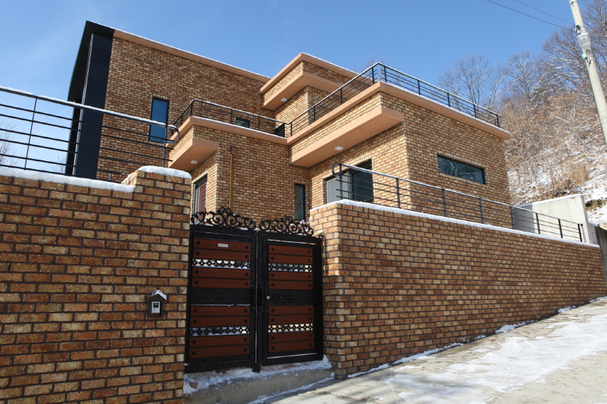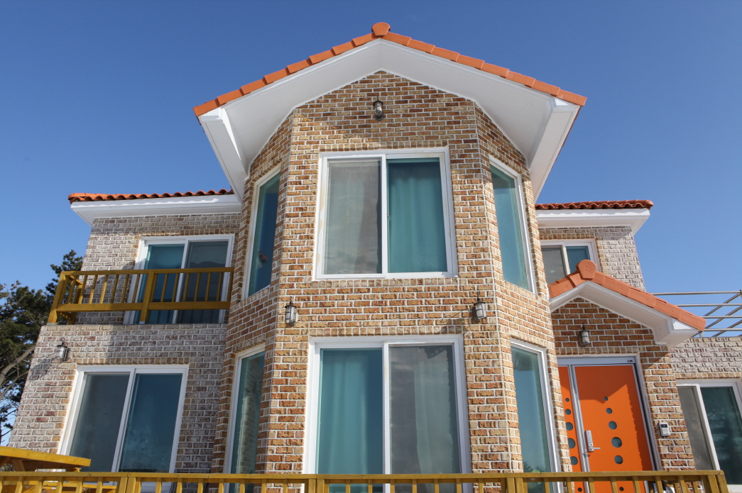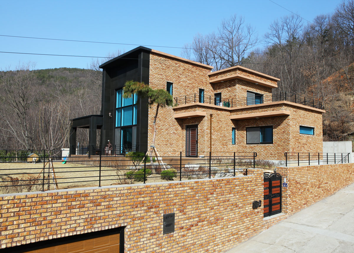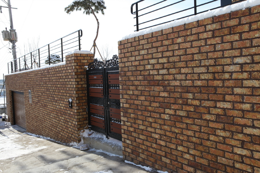 명품 파워브릭 옐로우 SIZE : 205x90x75 m²/49장 (1P/832) 기존의 고벽돌 및 파벽돌의 단점을 보완한 점토벽돌로 힘있고 세련된 치장재입니다. 10여 가지의 메지(줄눈시멘트) 칼라로 다양한 시공패턴 연출, 메지(줄눈시멘트) 차이로 다른 분위기를 냅니다.