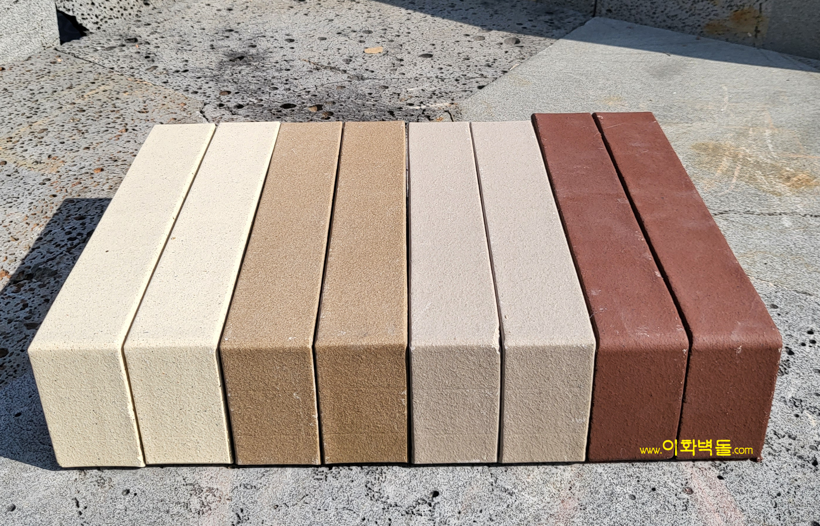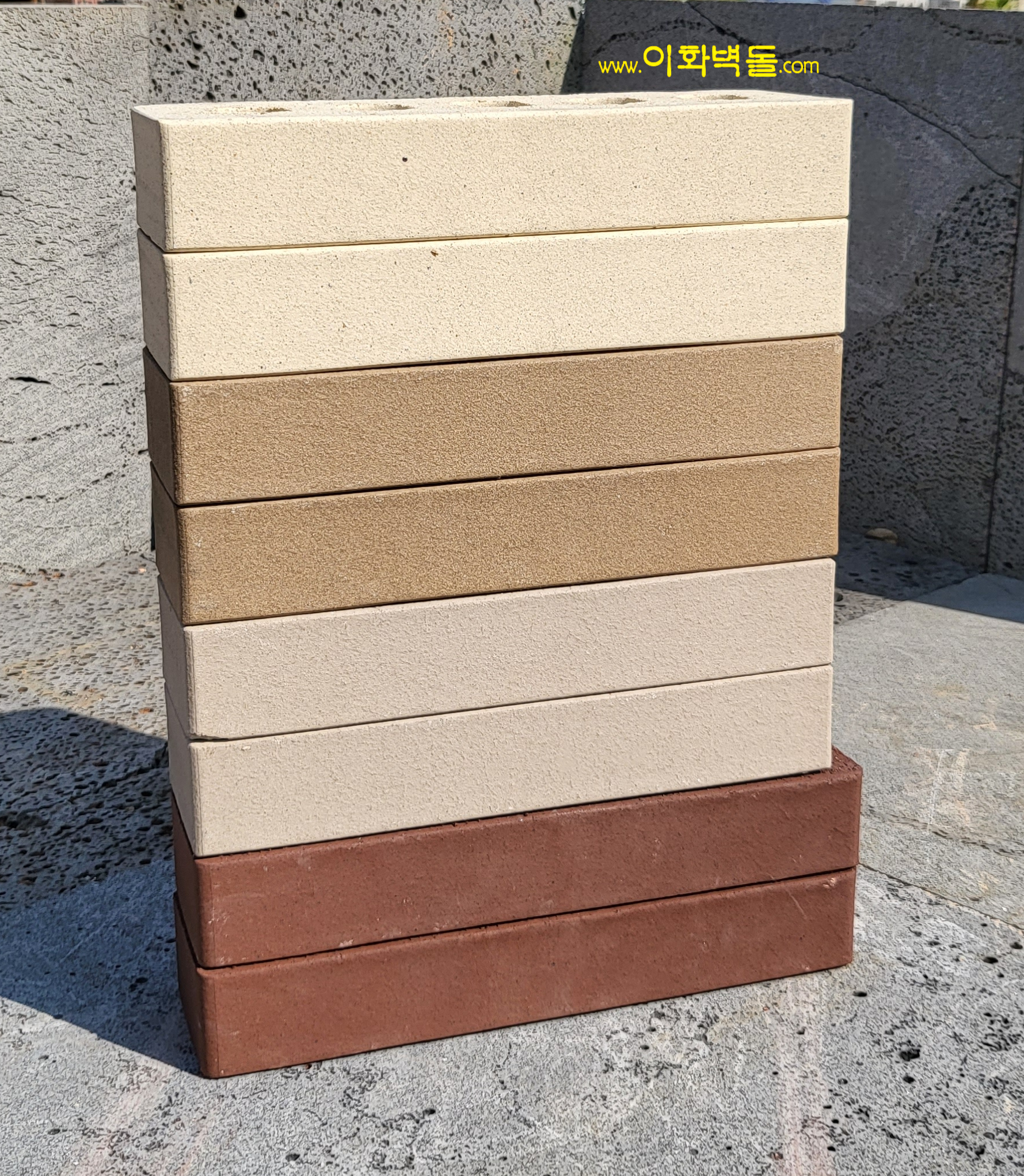 화이트 브릭 / 베이지 브릭 / 그레이 브릭 / 카카오 브릭 화이트 브릭/ 베이지 브릭 / 그레이 브릭 - 규격 : 290x90x50 m²당 : 52장(줄눈10mm기준) 포장 : 1p/648장 카카오 브릭 - 규격 : 300x90x50 m²당 : 52장(줄눈10mm기준) 포장 : 1p/1,040장 용도 : 신축건물치장 / 건물외벽재시공 / 실내인테리어 특징 : 1200℃의 이상 온도로 구워서 만들어진 미장 점토 벽돌
