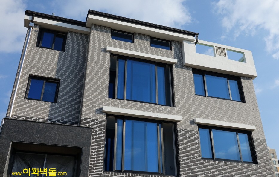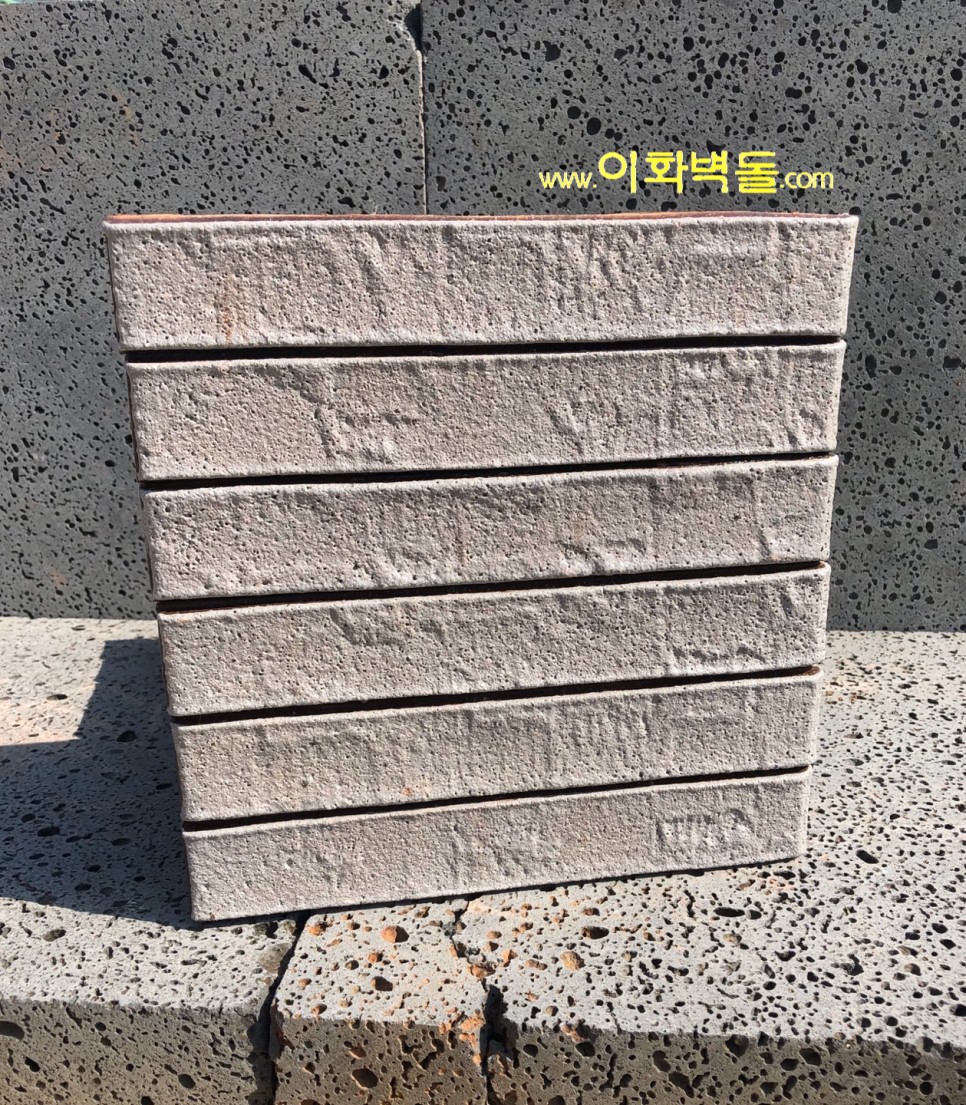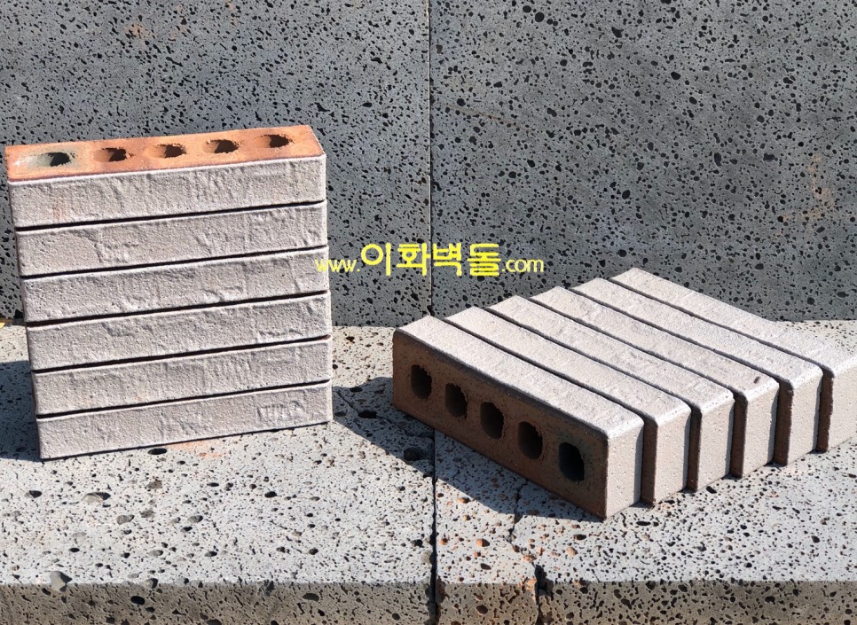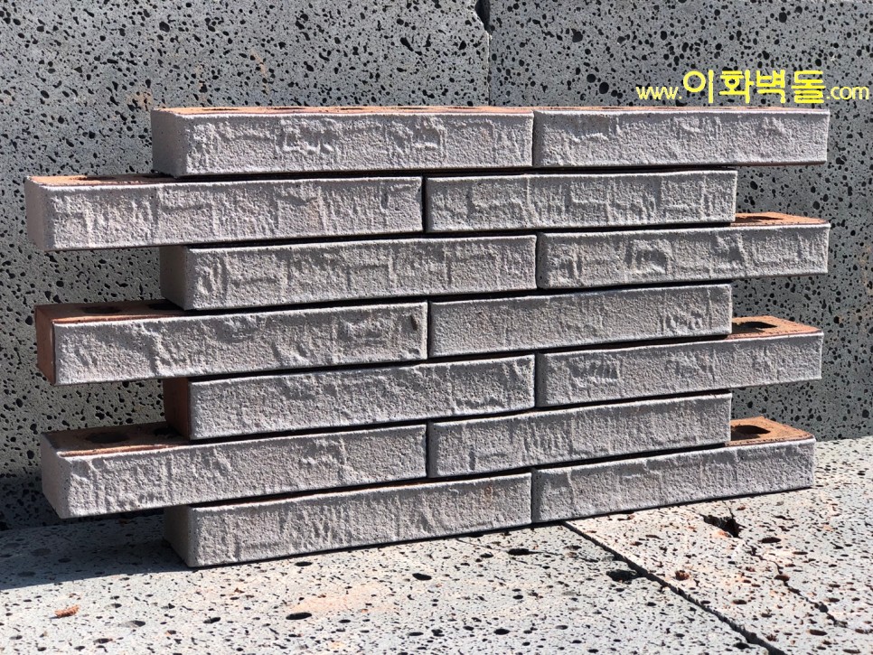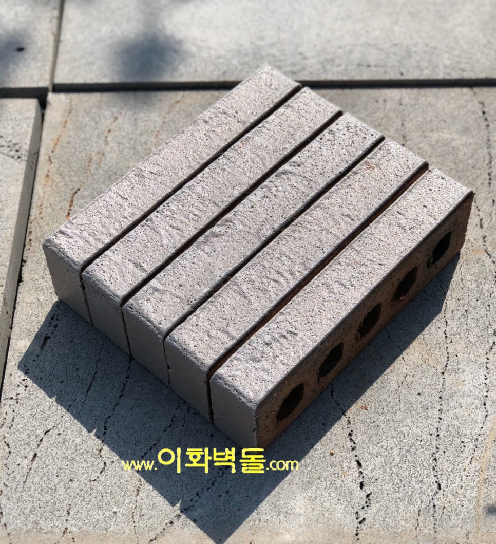 제품명 : 명품 롱 유약그레이 규격 : 300x90x50m²당 : 50장(줄눈15mm기준) 1p/1040장 230x90x57 m²당 : 60장(줄눈15mm기준) 1p/1105장(현재 재고없음) 용도 : 신축건물치장 / 건물외벽시공 / 실내인테리어 특징 : 1200℃ 이상의 온도로 구워진 유약점토벽돌