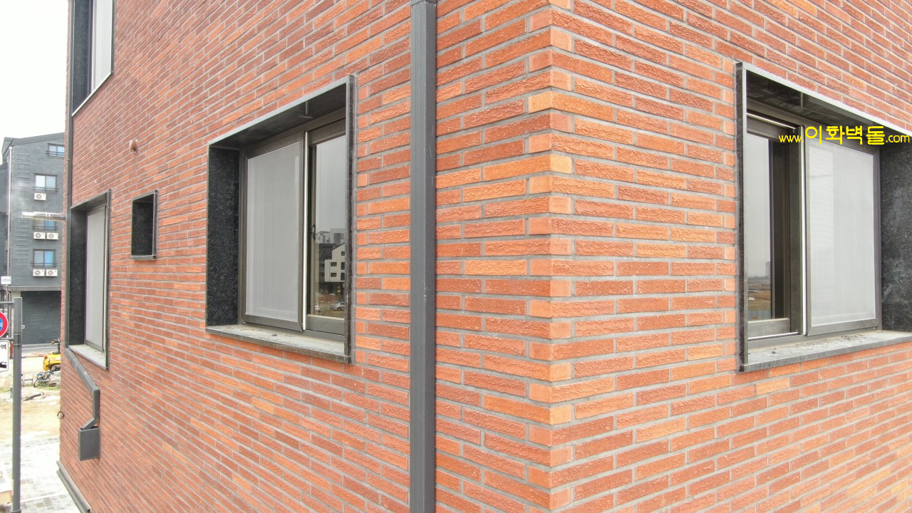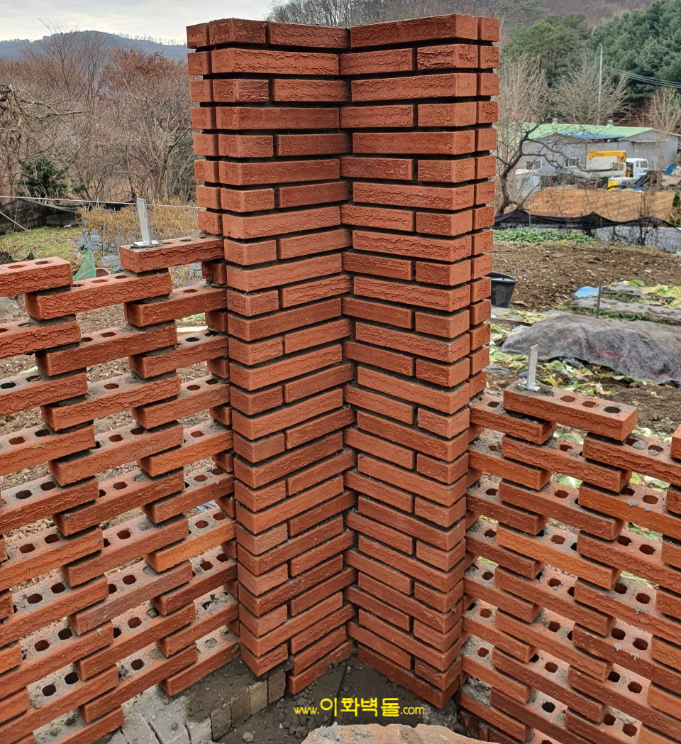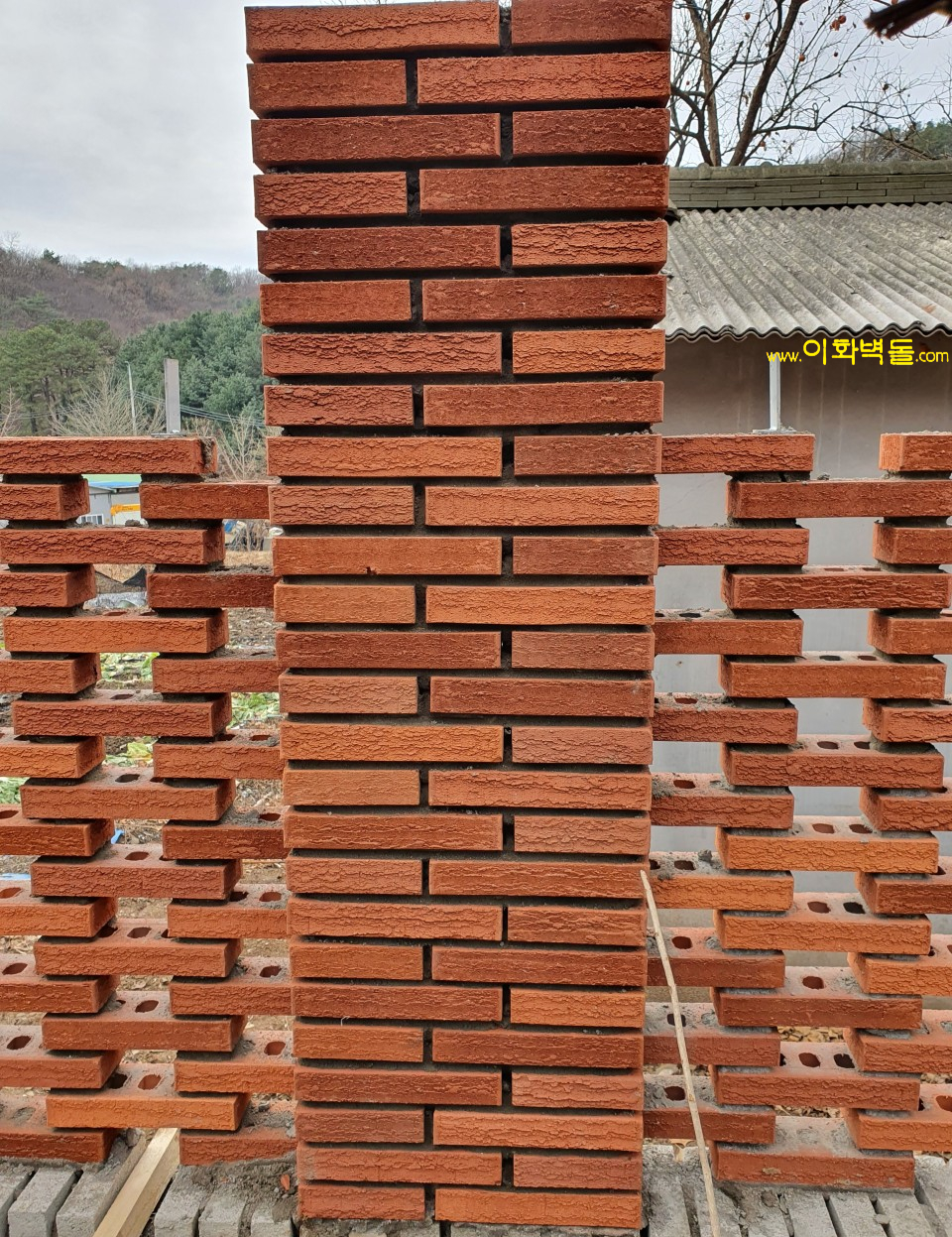 제품명 : 레드파벽 규격 : 290x90x48 m²당 : 54장(줄눈15mm기준) 1p/1,040장 용도 : 신축건물치장 / 건물외벽시공 / 실내인테리어 특징 : 1200℃ 이상의 온도로 구워낸 적색점토벽돌