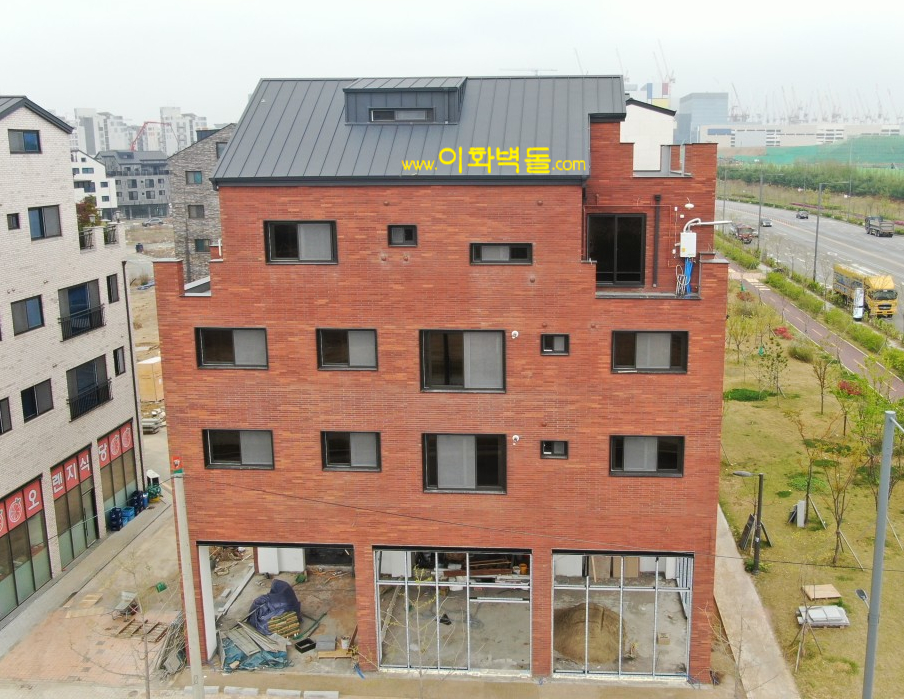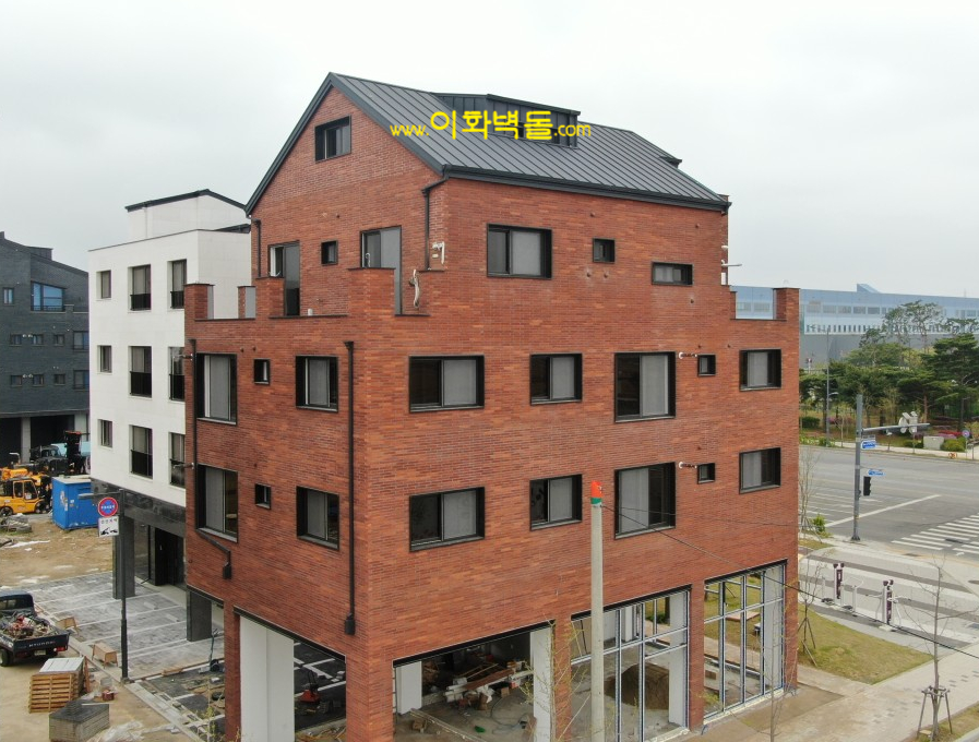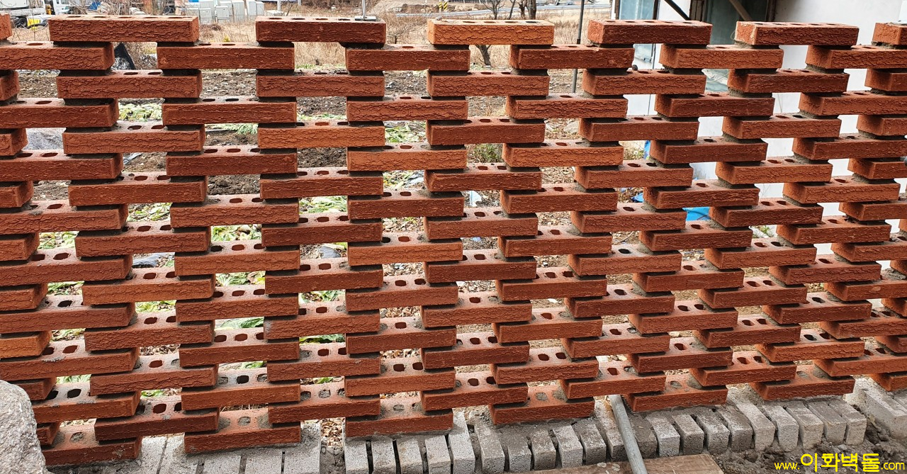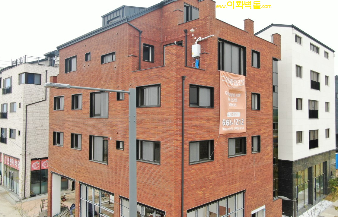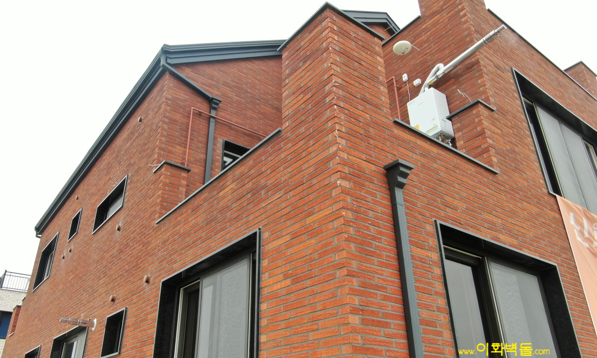 제품명 : 레드파벽 규격 : 290x90x48 m²당 : 54장(줄눈15mm기준) 1p/1,040장 용도 : 신축건물치장 / 건물외벽시공 / 실내인테리어 특징 : 1200℃ 이상의 온도로 구워낸 적색점토벽돌