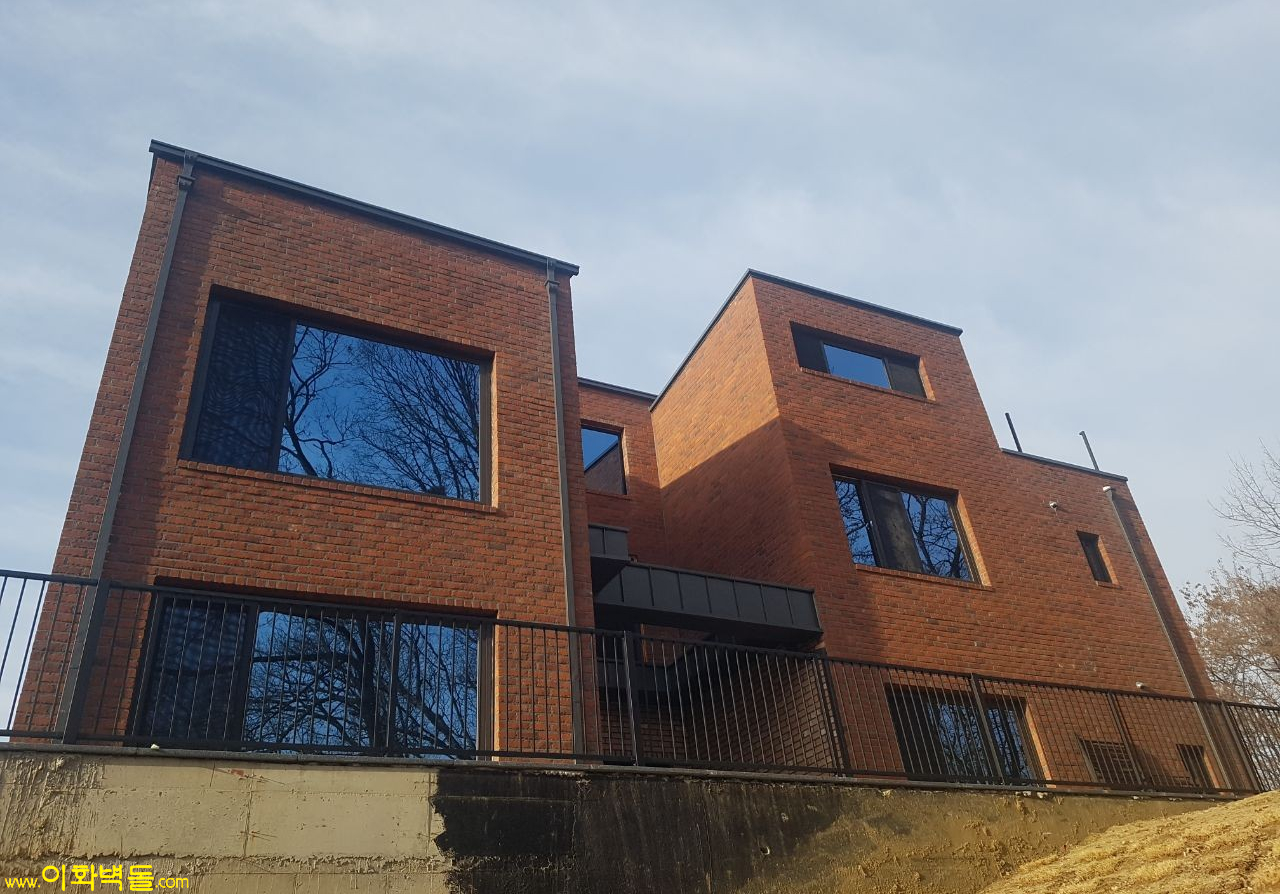 제품명 : 그랜드 슈퍼벽돌 레드 규격 : 230x80x76 m²당 : 42장(줄눈15mm기준) 1p/936장 용도 : 신축건물치장 / 건물외벽시공 / 실내인테리어 특징 : 1200℃ 이상의 온도로 구워낸 점보사이즈 점토벽돌