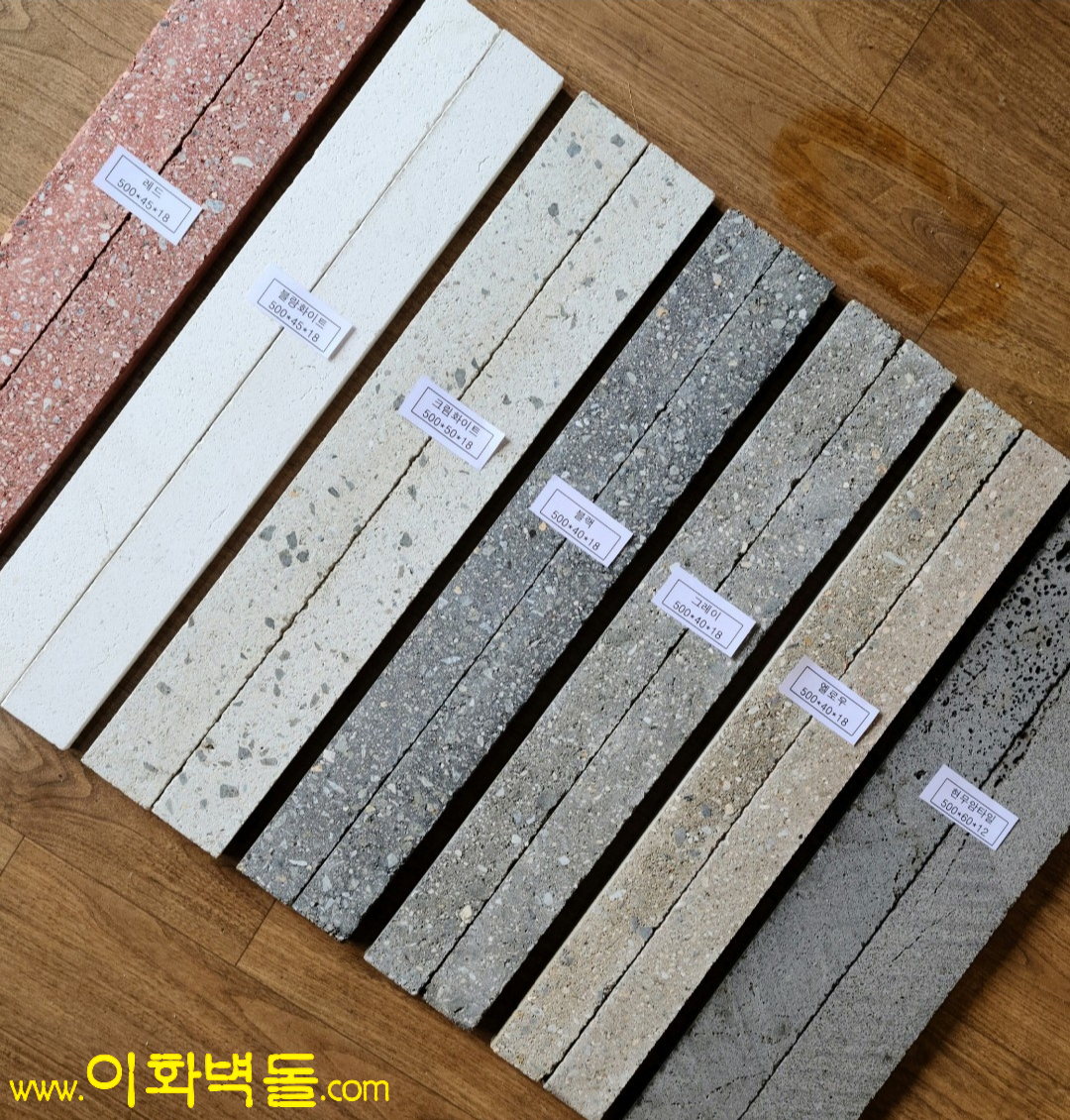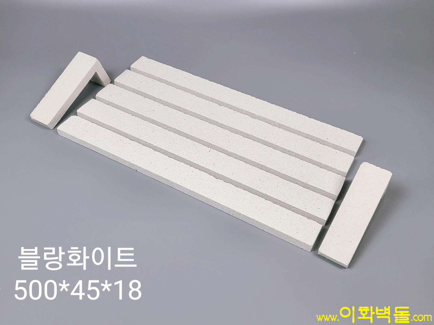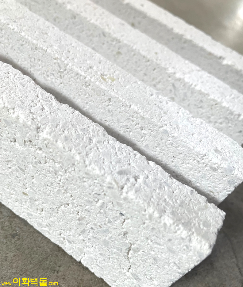 제품명 : 블랑화이트타일 타일규격 : 500x45x18 박스 당 : 30장 1p/50박스 코너규격 160x80x45x17 박스탕 42장 1p/50박스 특징 : 완전무결한 화이트 모노벽돌타일