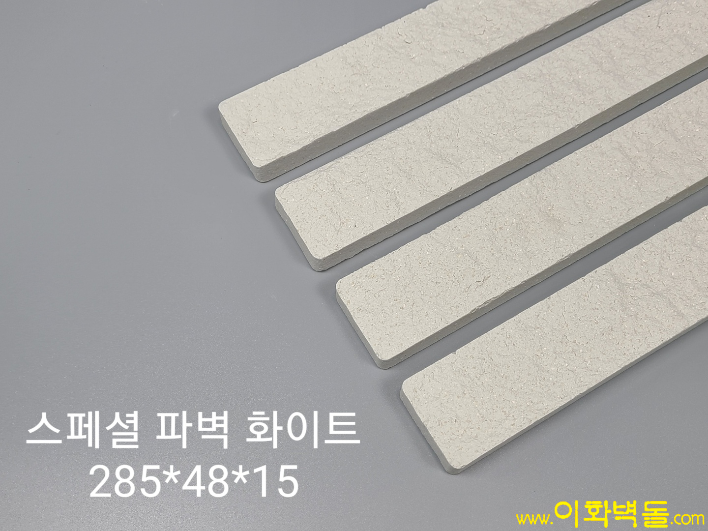 제품명 : 스페셜 파벽 화이트타일 타일규격 : 280x48x12 m²당 52장 장점 : 강도가 뛰어나고 흡수율이 3% 이내로 발수성이 우수하여 동파현상이 없으며 회배당 무게가 15kg으로 건물 하중의 부담을 줄여주고 변색이 거의 되지 않고 내구성이 우수하여 풍화현상이 발생되지 않으며 점토나 인조파벽으로 표현할 수 없는 화이트 색상구현 할 수 있습니다.