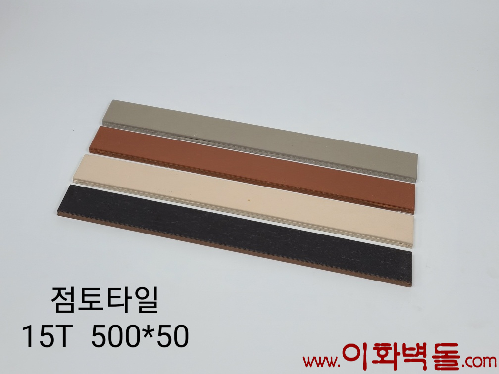 제품명 : 점토타일 타일규격 : 500x50x15 m²당 : 30장(줄눈15mm기준) / 1박스/30장 특징 : 친환경 점토로 만들어진 4가지 색상의 500와이드 수입타일 색상 : 아이보리 / 그레이 / 레드 / 블랙 용도 : 신축건물치장 / 건물외벽재시공 / 실내외인테리어