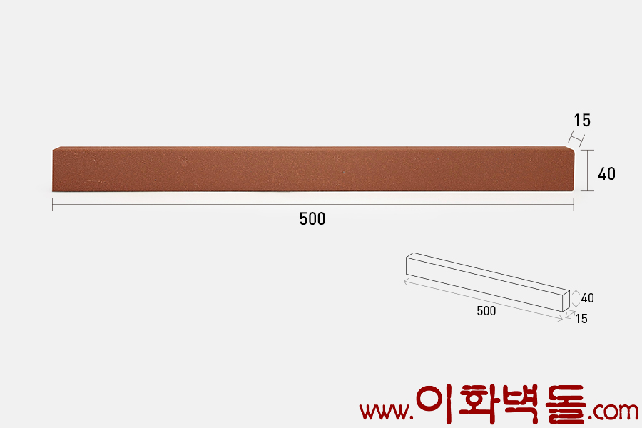 제품명 : 에코타일 플랫 레드 타일규격 : 500x40x15 m²당 : 33장(줄눈20mm기준) 1박스/33장/27kg 1p/60박스 코너규격 : 190x90x40x15 1박스/42장 특징 : 친환경 점토로 만들어진 4가지 색상의 500와이드 수입타일 / 코너마감까지 깔끔!! 색상 : 레드 / 그레이 / 화이트 / 블랙 용도 : 신축건물치장 / 건물외벽재시공 / 실내외인테리어