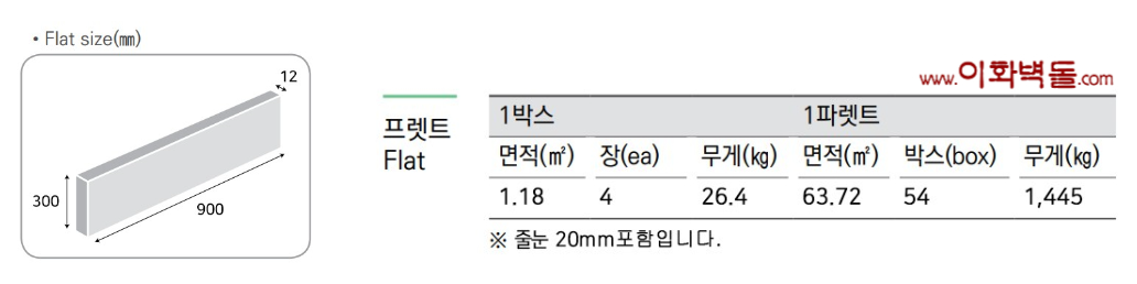 규격 : 300x900x12T / m²당 3.4장(줄눈20mm기준)
