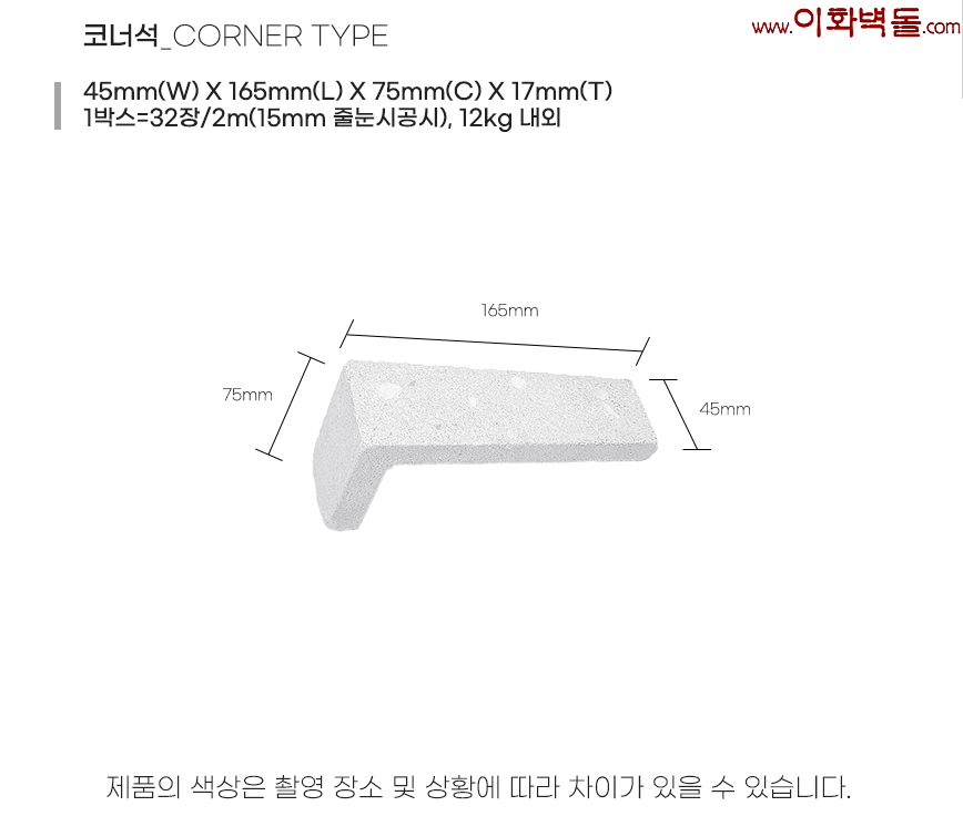 스노우 화이트 모노코너타일(블랑화이트코너타일) / 규격 : 165x75x45x17 m당 8.4장(줄눈15mm기준)