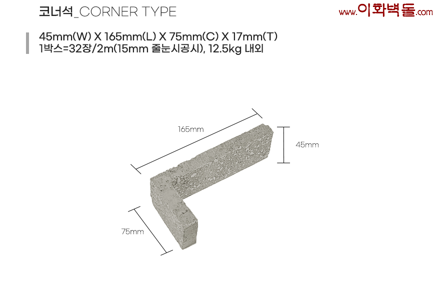 옐로우 모노코너타일 / 규격 : 165x75x45x17 m당 8.4장(줄눈15mm기준)