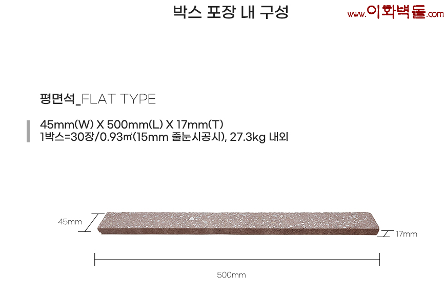 레드 모노타일 / 규격 : 500×45×17 m²당 : 30장(줄눈15mm기준)