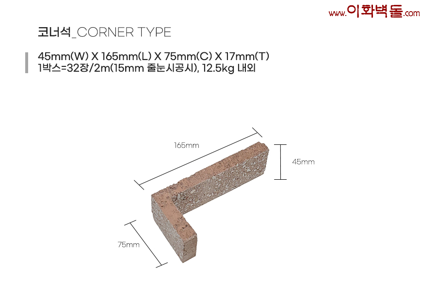 레드 모노코너타일 / 규격 : 165x75x45x17 m당 8.4장(줄눈15mm기준)