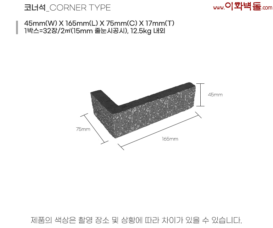 블랙 모노코너타일 / 규격 : 165x75x45x17 m당 8.4장(줄눈15mm기준)