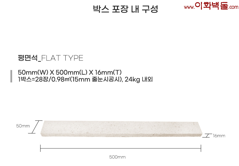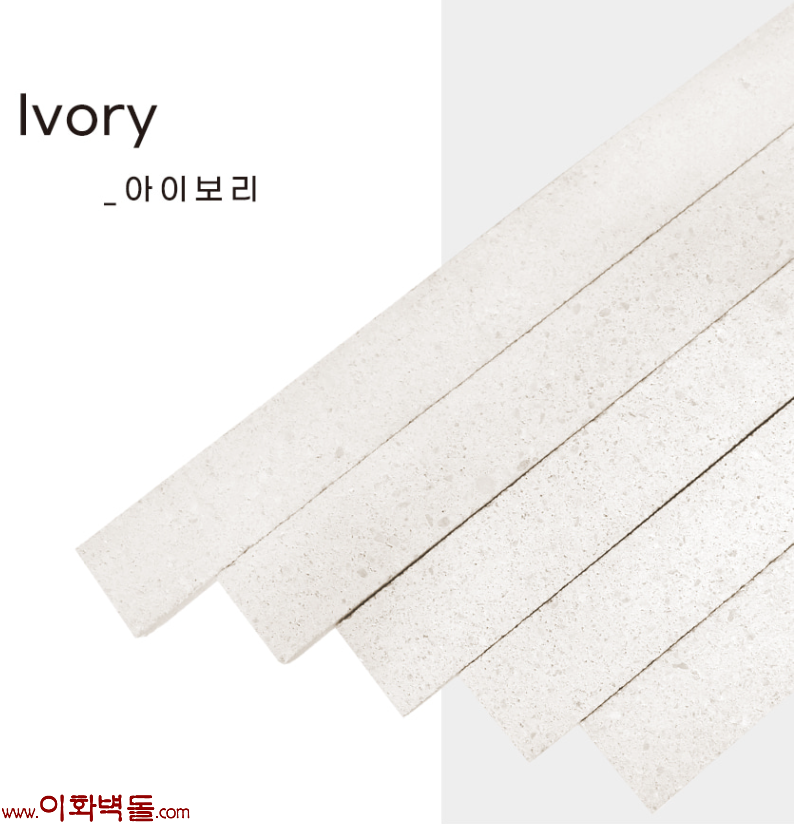 제품명 : 아이보리 모노타일 블랙 모노타일 / 규격 : 500×50×16 m²당 : 28장 1박스 / 28장 / 0.98m²(줄눈15mm기준) / 24kg 용도 : 신축건물치장 / 건물외벽 재시공 / 실내인테리어