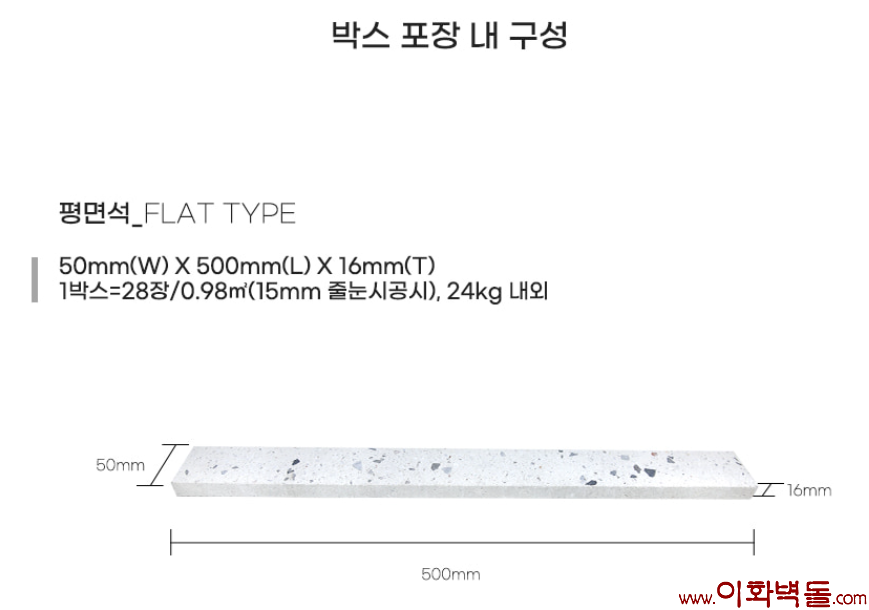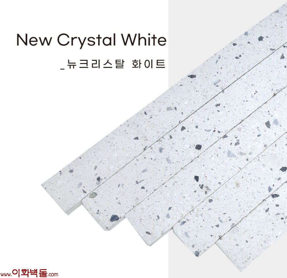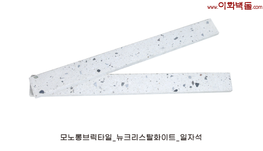 제품명 : 뉴 크리스탈 화이트 모노타일 블랙 모노타일 / 규격 : 500×50×16 m²당 : 28장 1박스 / 28장 / 0.98m²(줄눈15mm기준) / 24kg 용도 : 신축건물치장 / 건물외벽 재시공 / 실내인테리어
