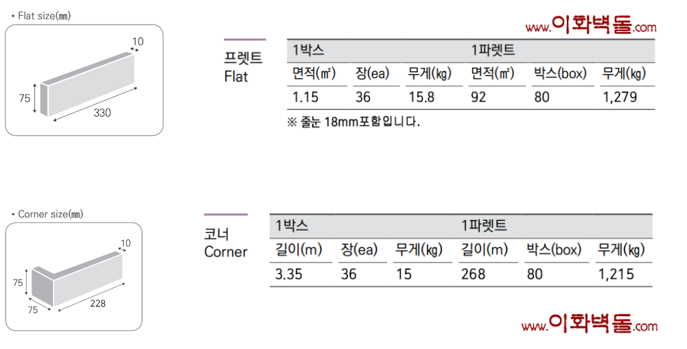 타일 SIZE : 330x75x10T m²/31장 (줄눈18mm기준)