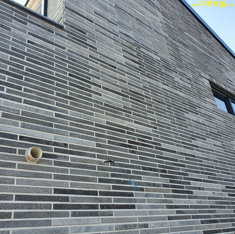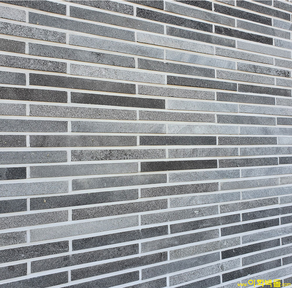 제품명 : 인도네시아 현무암타일 SIZE : 500x50x15T m²/28장 (줄눈18mm기준) 1box = 1m² = 28장 / box 중량 19.5kg 1p = 48box = 48m² / 1p 중량 956kg 특징 : 인도네시아 화산석 수입타일 용도 : 신축건물치장 / 건물외벽재시공 / 실내외인테리어 10여 가지의 메지(줄눈시멘트) 칼라로 다양한 시공패턴 연출, 메지(줄눈시멘트) 차이로 다른 분위기를 냅니다