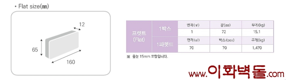몽당벽돌타일 청고벽돌 타일규격 : 160x65x12 m²당 : 72장(줄눈15mm기준) 포장 : 1박스 m² / 박스중량 15.1kg 용도 : 신축건물치장 / 건물외벽재시공 / 실내외인테리어