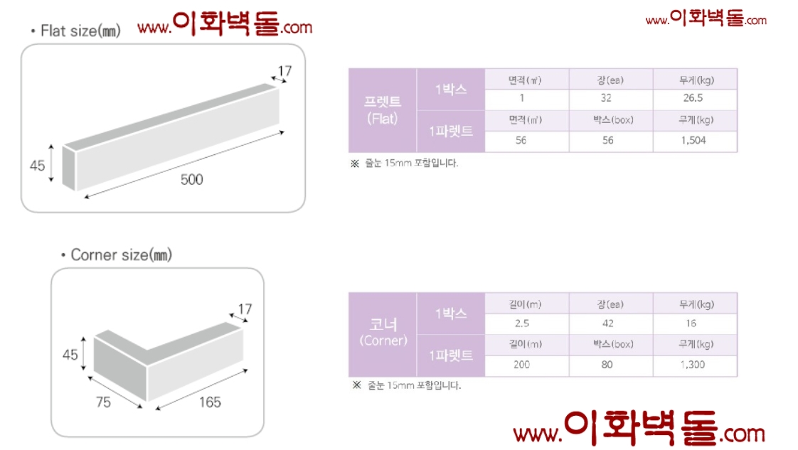 제품명 : 500모노 슬림 레드 규격 : 500×45×17 m²당 : 32장(줄눈15mm기준) 1박스 / 32장(1m²) / 27kg - 1파렛트 / 50박스 / 1,370kg 용도 : 신축건물치장 / 건물외벽 재시공 / 실내인테리어 특징 : 일반모노타일과 다르게 단색으로 채색된 제품으로 기본 모노제품들과 차이를 두었습니다