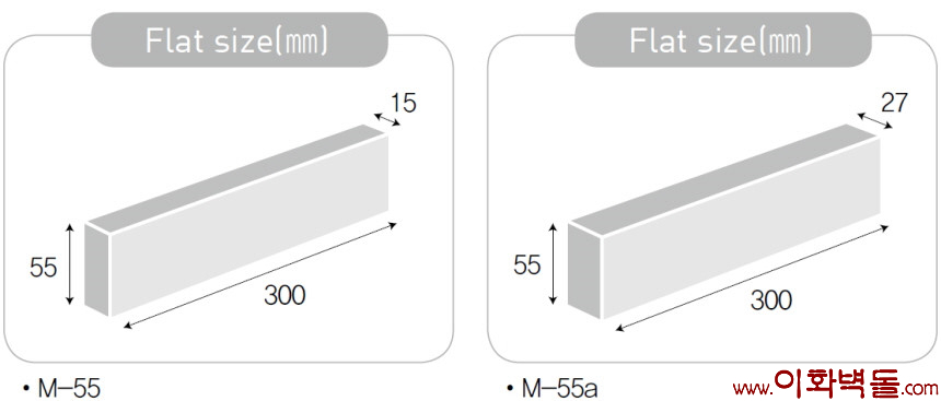 모노55화이트 벽돌 / 규격 : 300×55×27 m²당 : 45장(줄눈15mm기준)