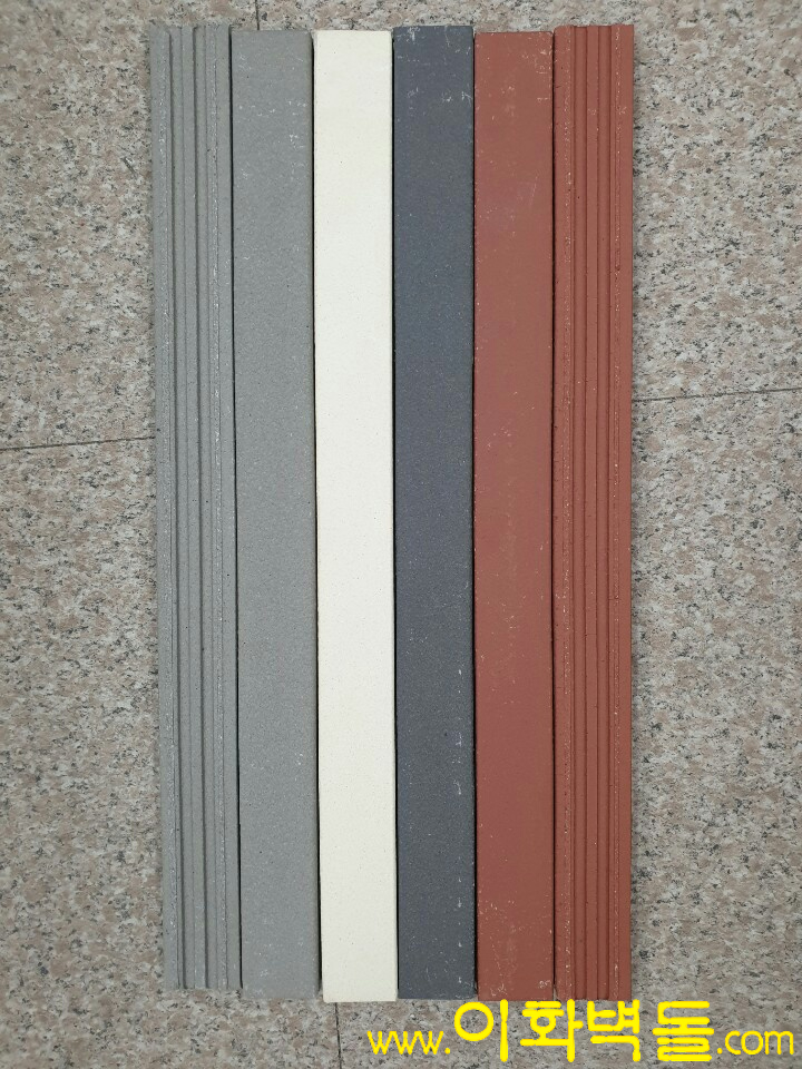 제품명 : 피아노 그레이타일 타일규격 : 500x40x15 m²당 : 33장(줄눈20mm기준) 1박스/33장/27kg 1p/60박스 코너규격 : 190x90x40x15 1박스/42장 특징 : 친환경 점토로 만들어진 4가지 색상의 500와이드 수입타일 / 코너마감까지 깔끔!! 색상 : 레드 / 그레이 / 화이트 / 블랙 용도 : 신축건물치장 / 건물외벽재시공 / 실내외인테리어