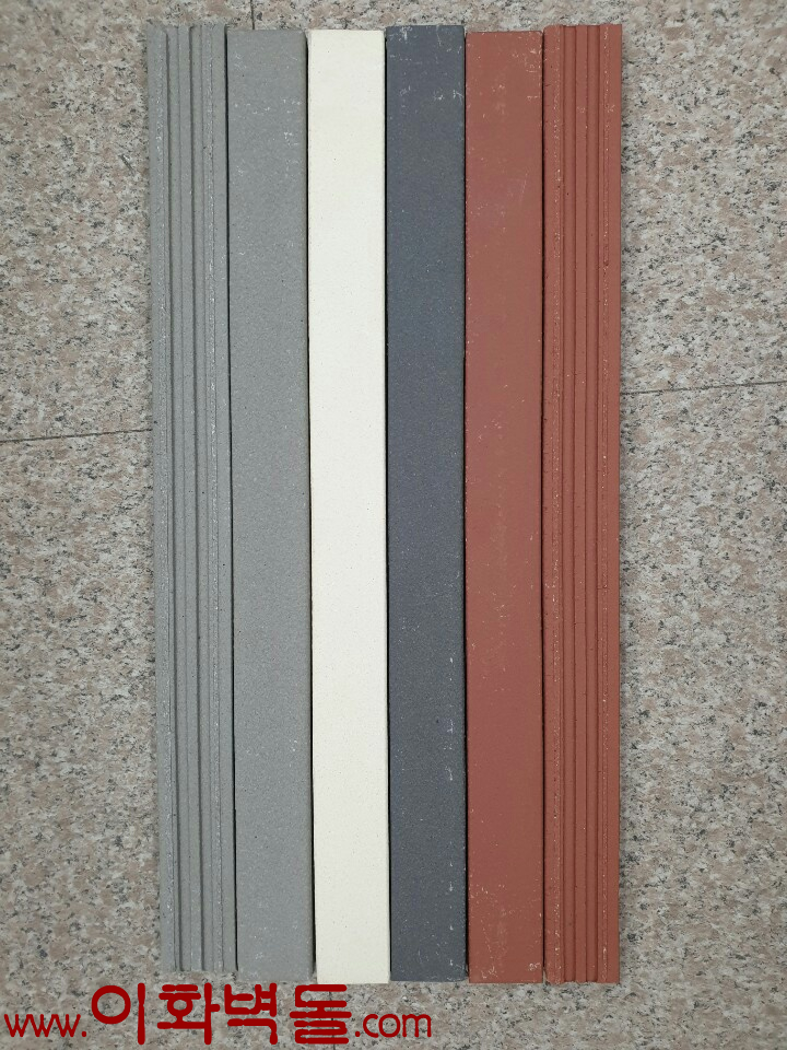 제품명 : 피아노 블랙타일 타일규격 : 500x40x15 m²당 : 33장(줄눈20mm기준) 1박스/33장/27kg 1p/60박스 코너규격 : 190x90x40x15 1박스/42장 특징 : 친환경 점토로 만들어진 4가지 색상의 500와이드 수입타일 / 코너마감까지 깔끔!! 색상 : 레드 / 그레이 / 화이트 / 블랙 용도 : 신축건물치장 / 건물외벽재시공 / 실내외인테리어
