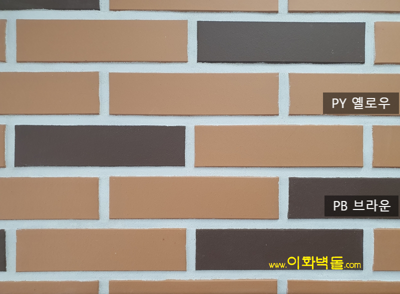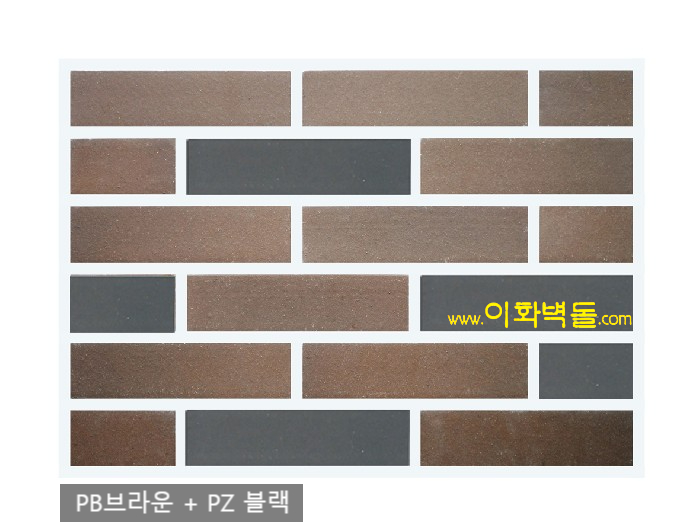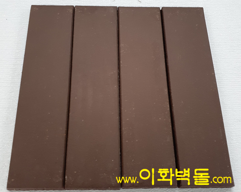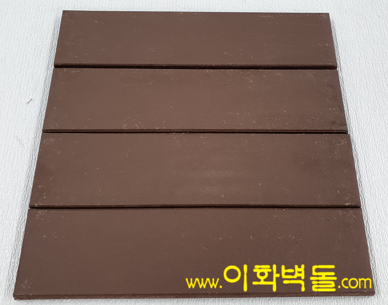 전돌타일60 PB 브라운 SIZE : 240x60x13 m²/52장 1박스/52장 1파렛트/84박스 박스의포장단위 : 1.0 ㎡ 1박스의중량 : 18㎏ 1파렛트의중량 :1,530㎏ 줄눈기준 : 15 ㎜ 코너 size 178x60x55x13t 1박스 4.5m / 60장 / 21.5kg' 1파렛트 270m / 60박스 / 1,310kg 10여 가지의 메지(줄눈시멘트) 칼라로 다양한 시공패턴 연출, 메지(줄눈시멘트) 차이로 다른 분위기를 냅니다.