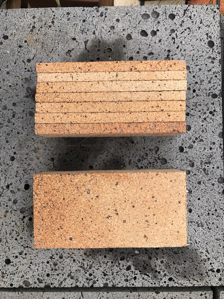 내화벽돌컷팅타일 SIZE : 230x20x65 m²/60장 내화벽돌을 컷팅가공하여 만든 벽돌타일입니다. 10여 가지의 메지(줄눈시멘트) 칼라로 다양한 시공패턴 연출, 메지(줄눈시멘트) 차이로 다른 분위기를 냅니다.