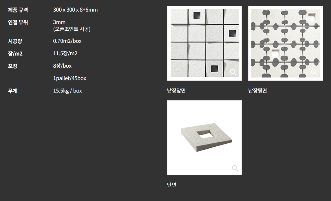 규격 : 300 x 300 x 8+6mm / m²당 11.5장