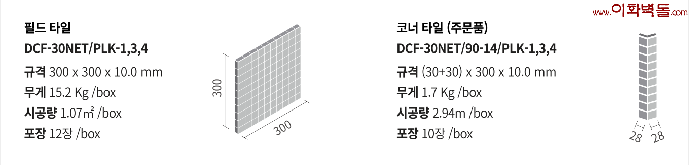 규격 : 300 x 300 x 10mm / m²당 11.2장