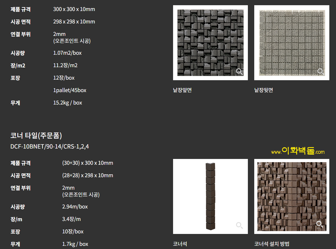 규격 : 300 x 300 x 10mm / m²당 11.2장